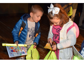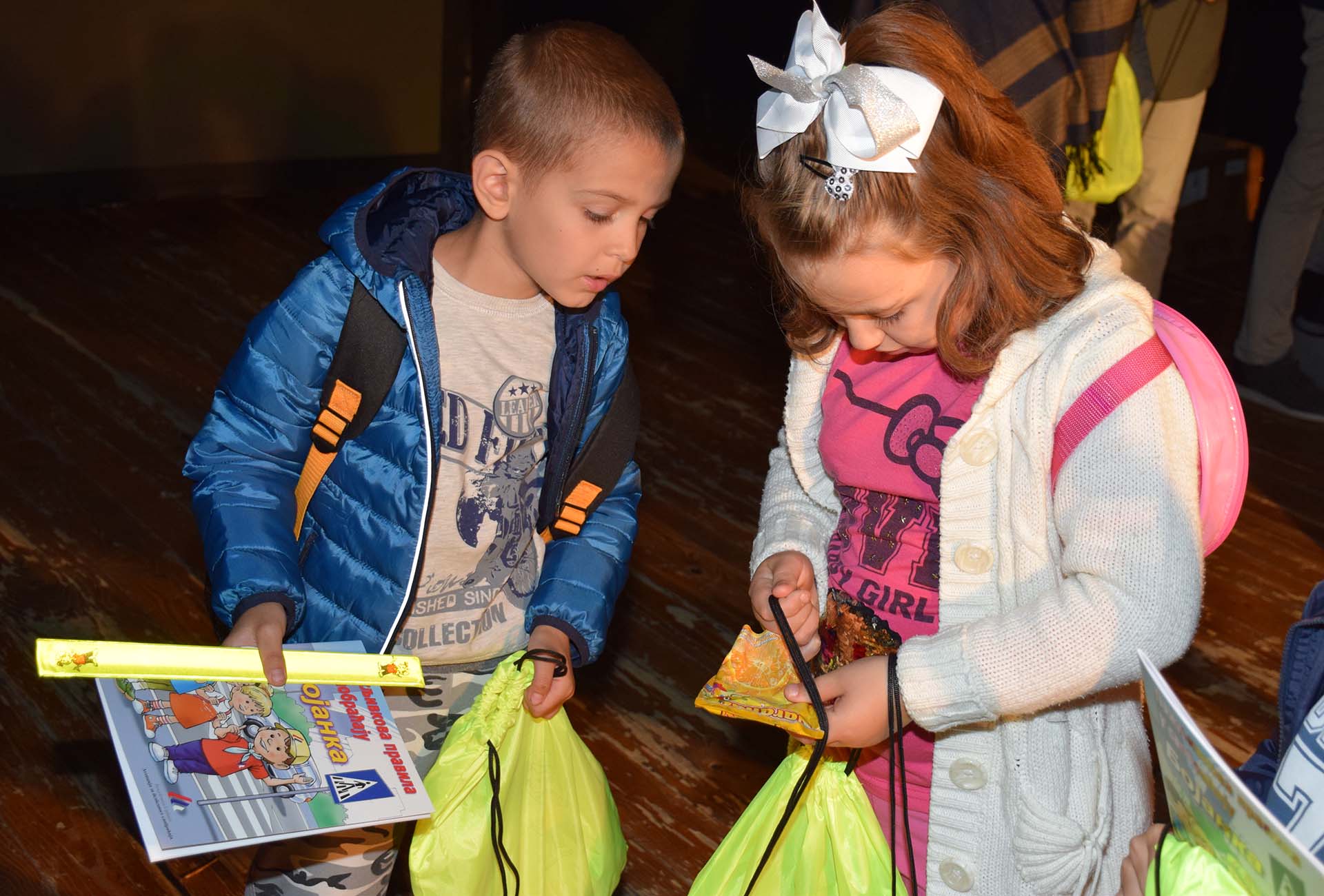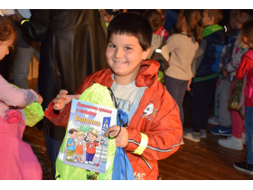 Na kraju predstave, svim đacima prvacima uručeni su fluorescentni rančevi gde se nalazi prikladan školski pribor, majica sa likom Pažljivka, knjiga Priručnik Pažljivko, kao i Bojanka Pažljivko i fluorescentne narukvice za bezbedan prelazak preko ulice.