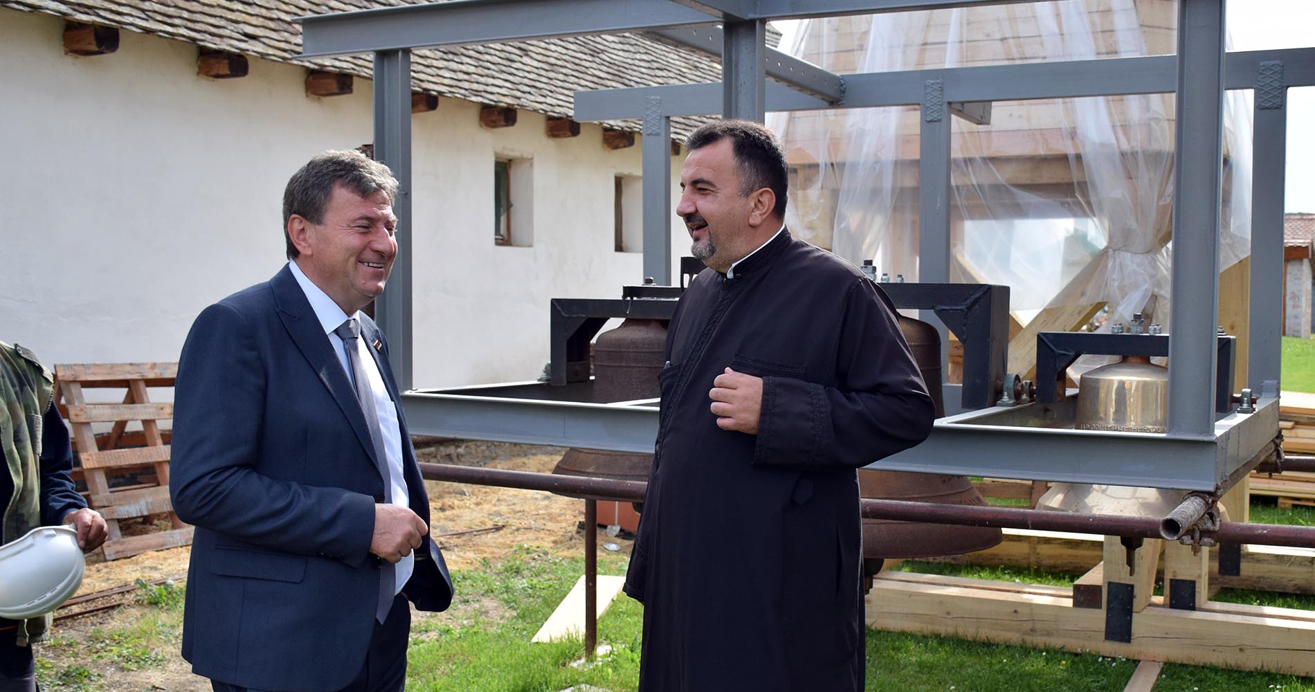 „Prva dva zvona postavljena su 1923. godine. Skoro sto godina kasnije naš hram dobija i treće zvono zahvaljujući Opštini Pećinci. Postavljanju zvona prethodila je restauracija tornja koji je krajem Drugog svetskog rata miniran i nakon toga obnovljen, ali ne u potpunosti. Tek sa ovom restauracijom toranju će biti vraćen izgled kakav je imao prema fotografiji iz 1907. godine. Da bismo to postigli urađena su unutrašnja ojačanja konstrukcije, toranj je dograđen 3,5 metara i izgrađena je nova kupola, koja će biti podignuta nakon opšivanja bakrom, a obnovljeni zvonik biće visok 32 metra“ – rekao je Kovač.