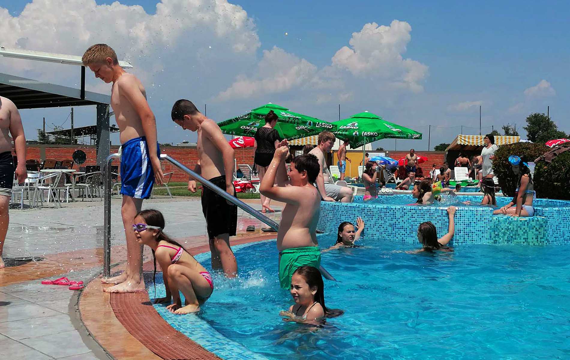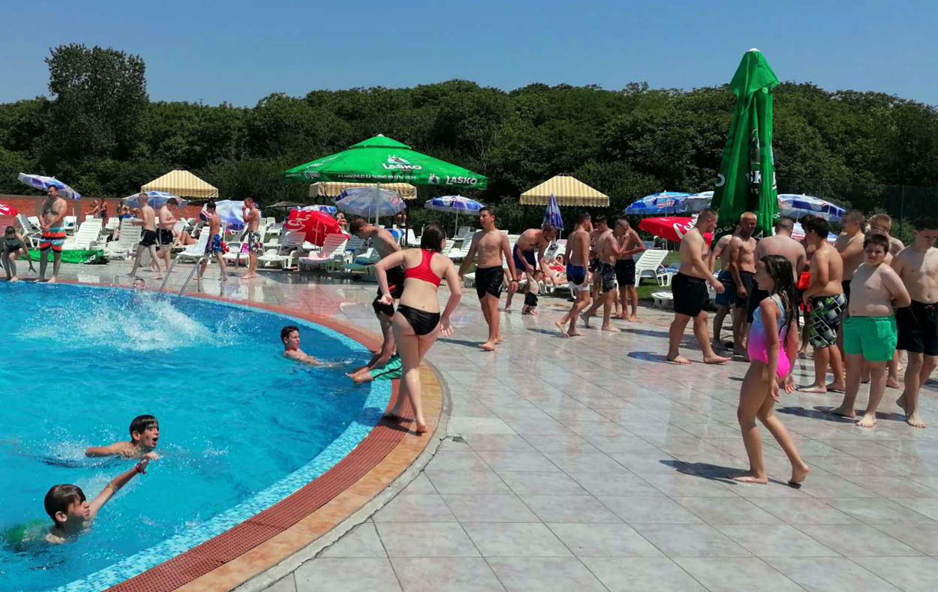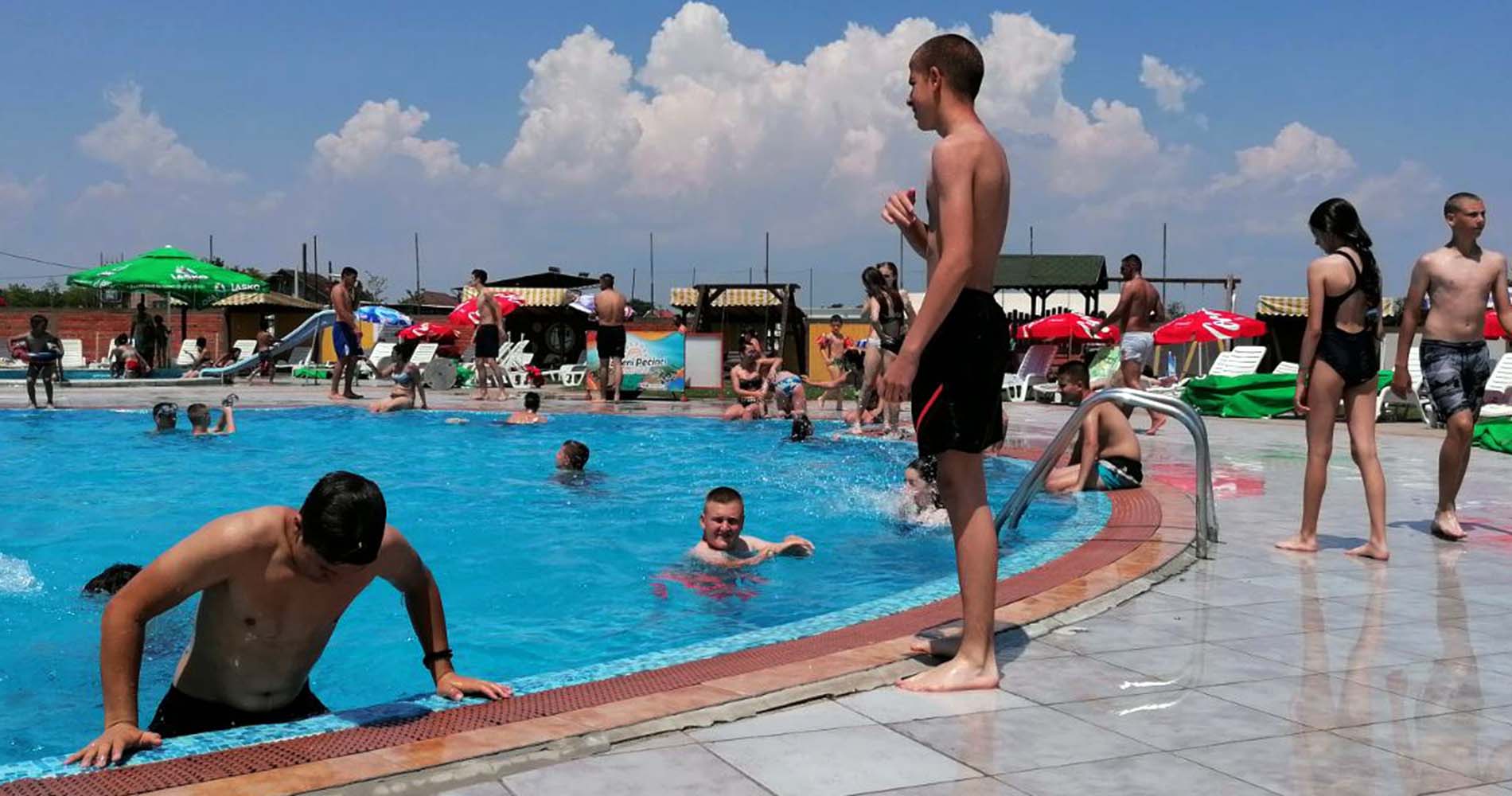 Prvog dana kupališne sezone na Bazenima Pećinci brojni stanovnici naše opštine, posebno mladi, spas od tropskih vrućina potražili su u vodi i u osvežavajućim napicima u kafe baru pored bazena.