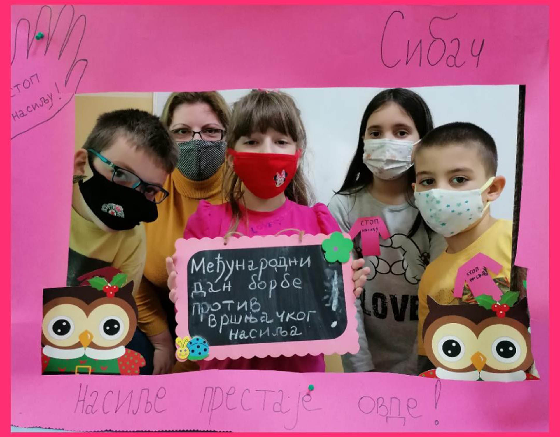U pećinačkoj školi „Slobodan Bajić Paja“, učenici su zajedno sa svojim učiteljicama, uz pomoć pedagoga Marije Malešević, defektologa Jelena Radosavljević i nastavnice likovne kulture Vesne Luković Maričić na roze balonima i hameru pisali poruke o prijateljstvu, toleranciji, međusobnom poštovanju i uvažavanju različitosti. Takođe, u znak podrške osobama koje su pretrpele nasilje učenici su obukli roze majice i nosili natpise na dlanu „Stop nasilju“. Kroz igru pećinački osnovci pokazali su svoja ophođenja prema drugima i podržavali vršnjake u borbi protiv vršnjačkog nasilja, osnaživali nenasilnu komunikaciju i nenasilno rešavanje konflikata. Tokom ovih aktivnosti, učenici su posetili i vršnjake koji pohađaju izdvojeno odeljenje SOŠO ,,Anton Skala" iz Stare Pazove, kao i korisnike Dnevnog boravka za decu i mlade sa smetnjama u Subotištu.