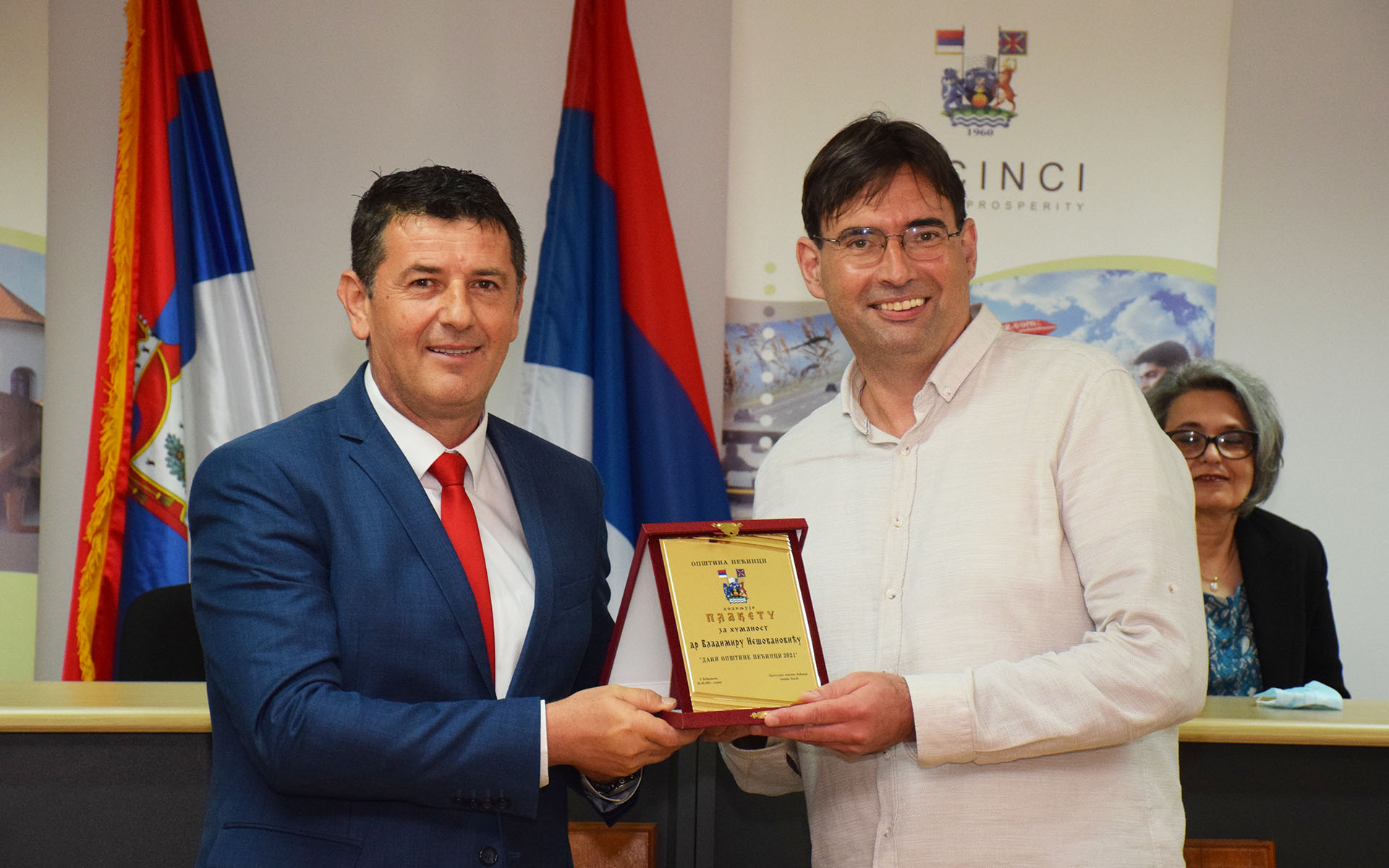 U kategoriji Plaketa za humanost laureati su: Mijomir Vukašinović za 82 dobrovoljna davanja krvi, Udruženje ribolovaca “Donji Tovarnik” za angažovanje na prikupljanju sredstava u humanitarnoj akciji za “Sofijin prvi korak”, i doktori Vladimir Nešovanović i Miloš Mihić koji su svojim požrtvovanjem tokom godine pandemije postali sinonim za kovid ambulantu pećinačkog doma zdravlja “Dr Dragan Funduk”, a plakete je uručio predsednik opštine Pećinci Siniša Đokić