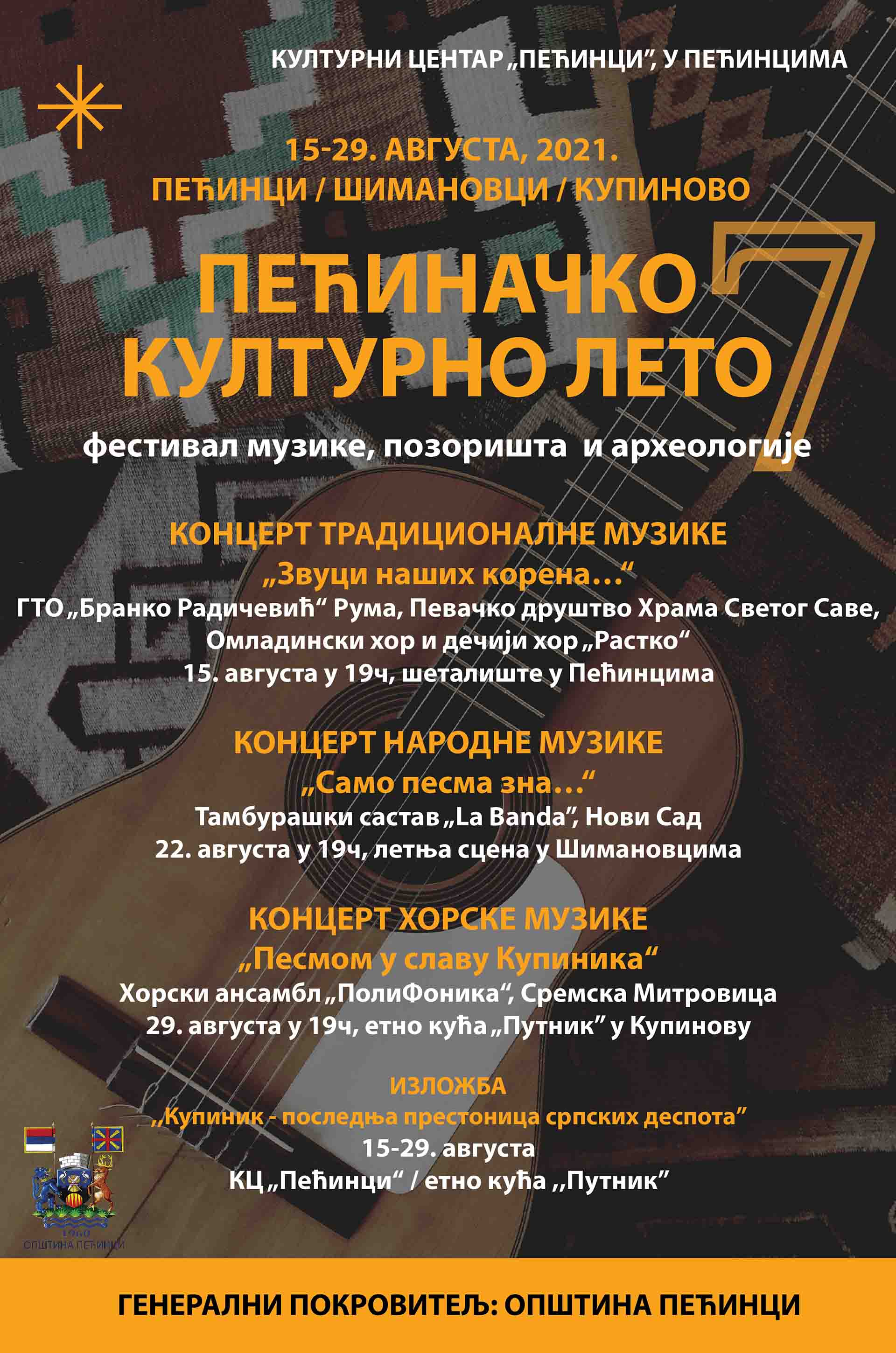 Pored ova tri centralna događaja, u holu Kulturnog centra „Pećinci“ biće postavljena istorijska izložba „Kupinik – poslednja prestonica srpskih despota“, koju će posetioci moći da pogledaju svakog radnog dana od 8.00 do 15.00 časova, dok će se 29. avgusta izložba preseliti u dvorište Etno kuće „Putnik“ u Kupinovu povodom zatvaranja ovogodišnjeg „Pećinačkog kulturnog leta“.