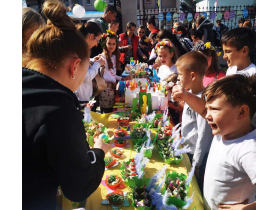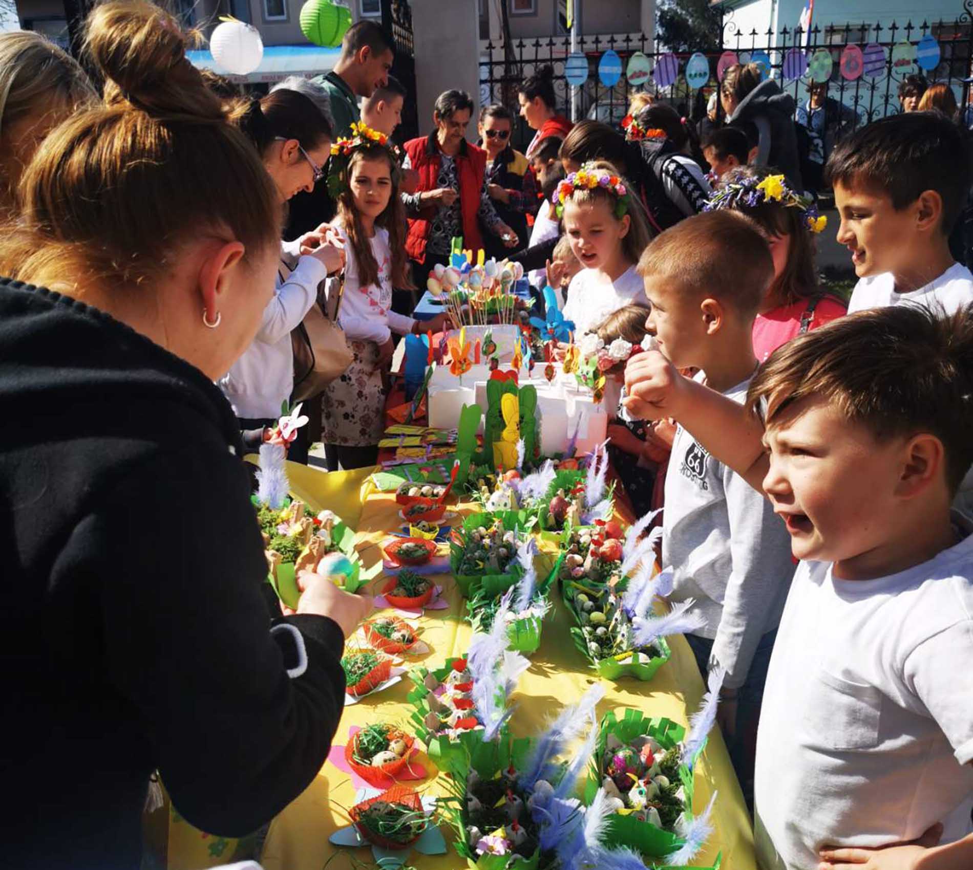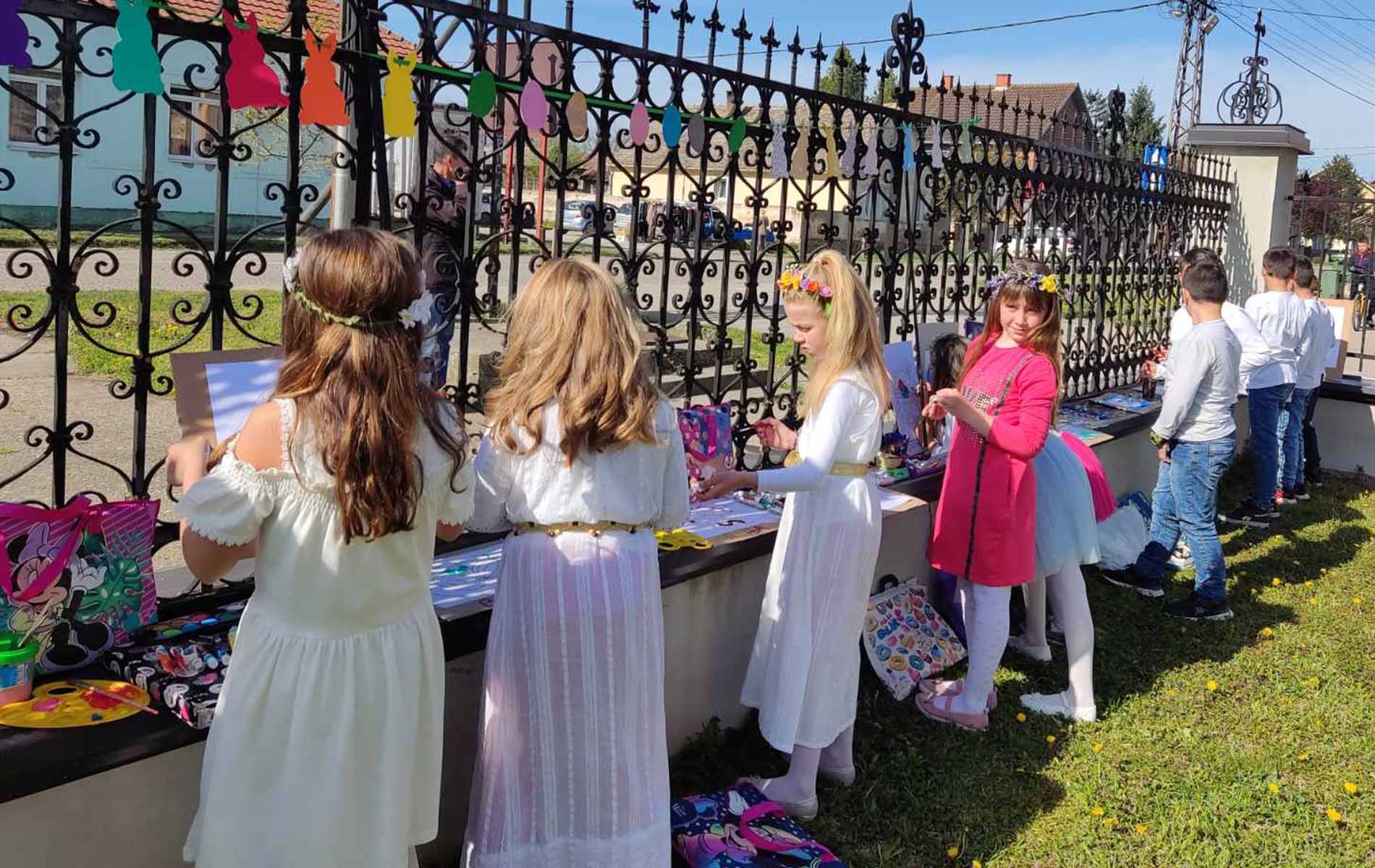 Centralna tema i likovne radionice i izložbe suvenira bio je Uskrs, a deca su svojom kreativnošću, živim bojama, pesmom i igrom toga dana oživela crkveno dvorište i centar Sremskih Mihaljevaca. Ukrase su izrađivala od recikliranih materijala, kako i priliči članovima Tima za zelenije škole Vojvodine. U celom događaju su aktivno učestvovali i roditelji, a sav prihod ostvaren od prodaje suvenira ponovo će biti uložen u školski materijal.