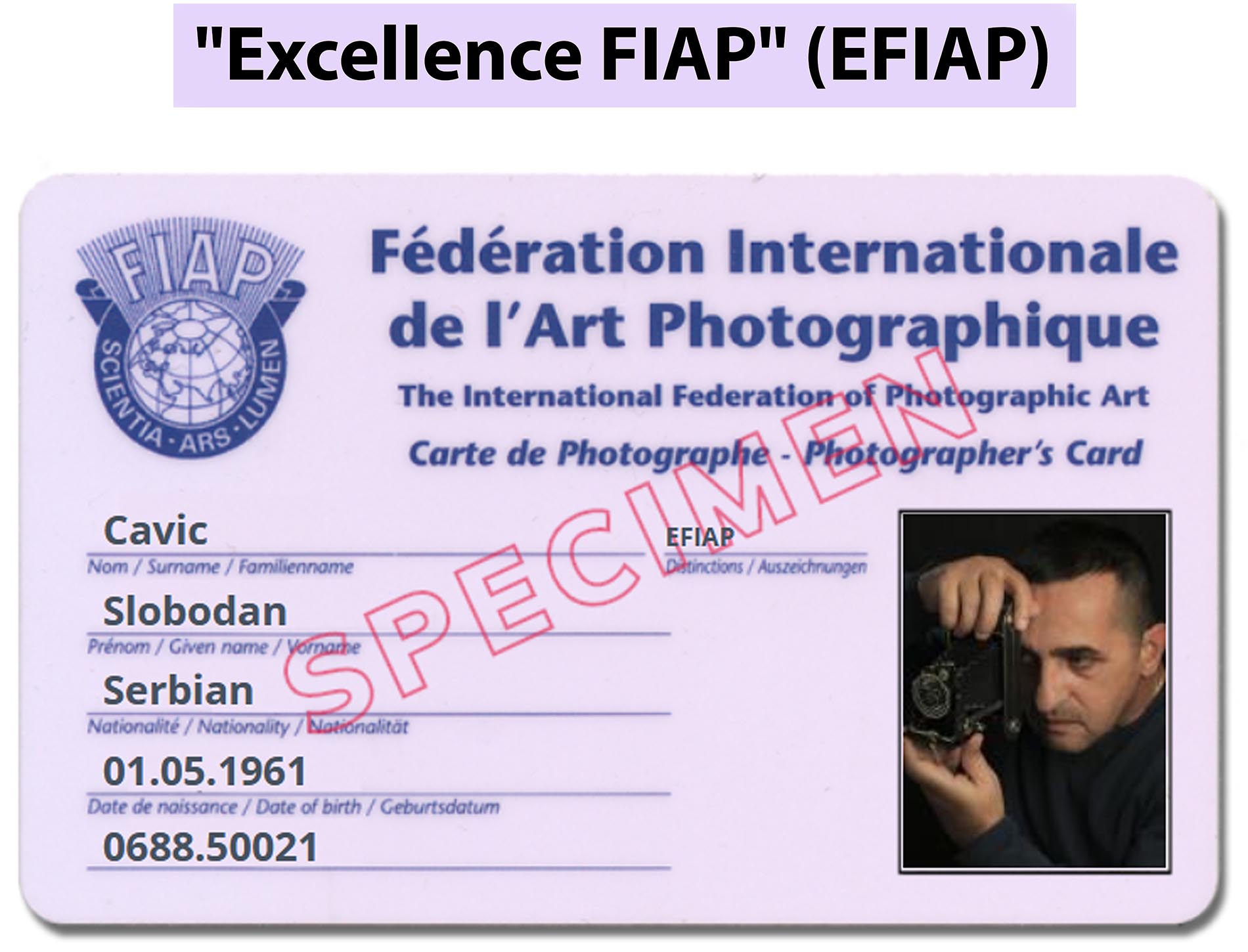 Ovo visoko, prestižno zvanje se dodeljuje za postignute izuzetne rezultate fotografskim umetnicima čiji su umetnički i tehnički kvalitet i produkcija radova potvrđeni učestvovanjem na međunarodnim izložbama pod patronatom FIAP-a. Zvanje Ekselencije FIAP-a Slobodanu je zvanično dodeljeno i objavljeno na stranicama FIAP-a 24. aprila ove godine, a biće uručeno na svečanoj skupštini Fotografskog saveza Srbije. A o tome šta za njega ovo priznanje znači, Slobodan Čavić kaže: