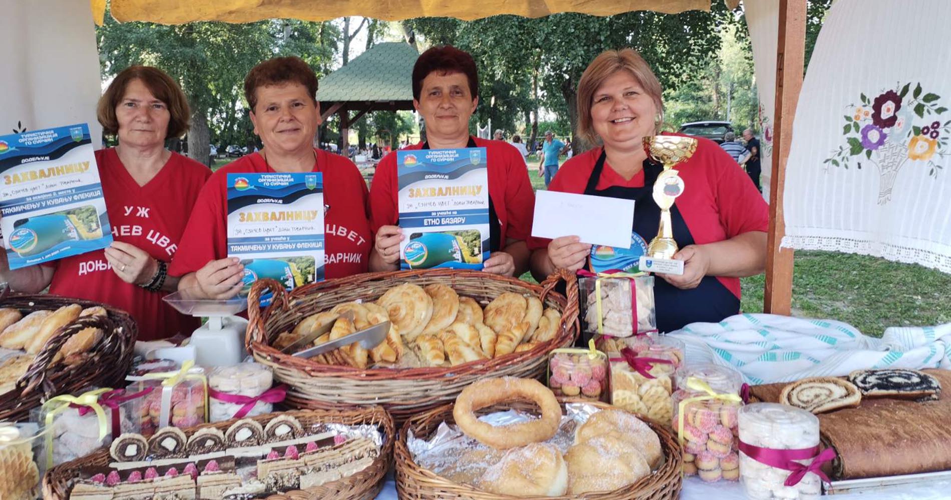 Kako nam je rekla Leposava Stepanović, predsednica tovarničkog udruženja žena, na ovoj izložbeno-prodajnoj manifestaciji, predstavile su svoje sveže umešene kifle, krofne i druge slatke i slane kolače, a učestvovale su i na takmičenju u kuvanju flekica – tradicionalnog sremačkog jela, gde su osvojile drugu nagradu.
