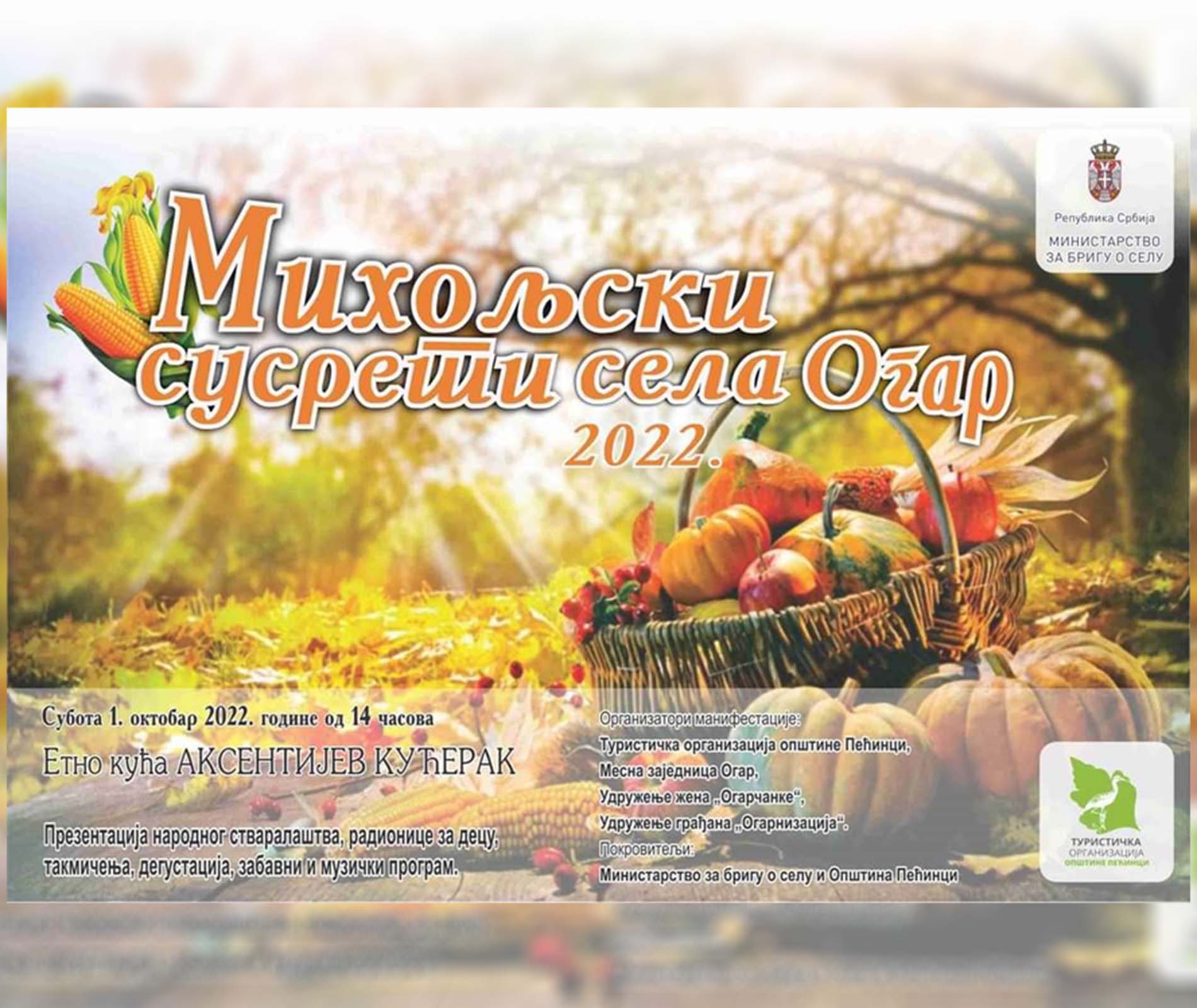 Prezentacije narodnog stvaralaštva, radionice za decu, takmičenja, degustacije, zabavni i muzički program biće i ove godine sastavni deo Miholjskih susreta sela, manifestacije posvećene jednoj od najzastupljenijih tradicionalnih sremskih poljoprivrednih kultura – kukuruzu, koja se održava u subotu, 1. oktobra, od 14.00 časova, u dvorištu Aksentijevog kućerka u Ogaru.