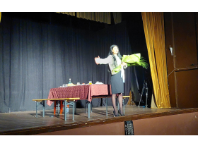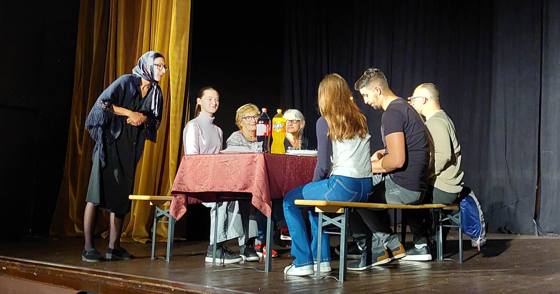 Crna komična monodrama rađena je po pričama iz knjige Đoke Filipovića “Divani sa šora”, a glavna uloga je poverena Jeleni Nedeljković, članici Dramske sekcije pećinačkog KC, po čijim rečima je ovakva vrsta projekta zahtevala dosta istraživačkog rada, kada je u pitanju priprema uloge, ali i čitave atmosfere koju su doneli na scenu.