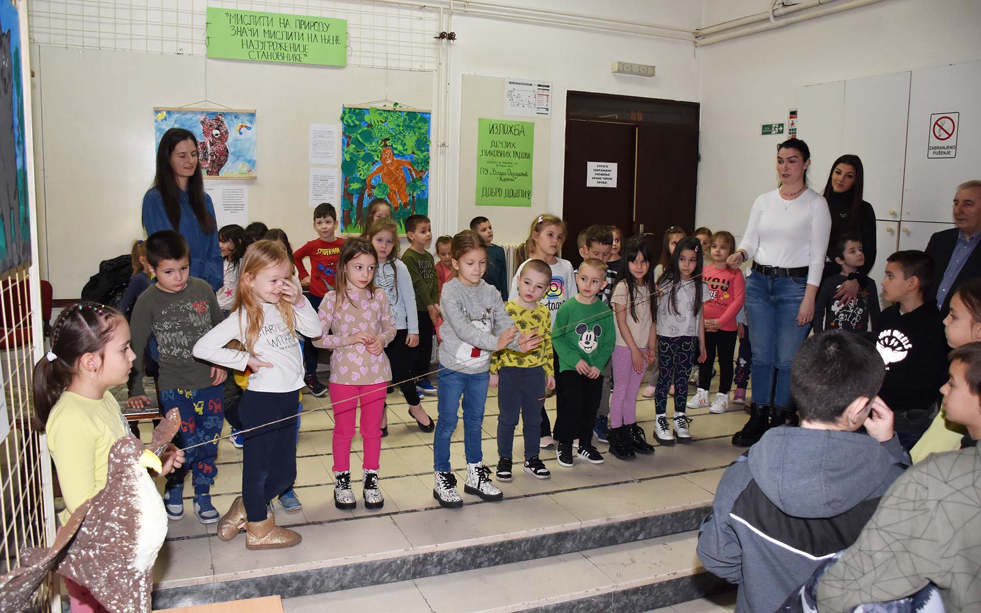 Mali “ekološki ambasadori” na otvaranju izložbe upoznali su prisutne o izloženim zaštićenim vrstama i njihovim specifičnostima, a podršku su im pružili i njihovi stariji drugari, učenici petog i sedmog razreda pećinačke Osnovne škole “Slobodan Bajić Paja” sa nastavnicama Vesnom Luković i Irenom Radivojević.