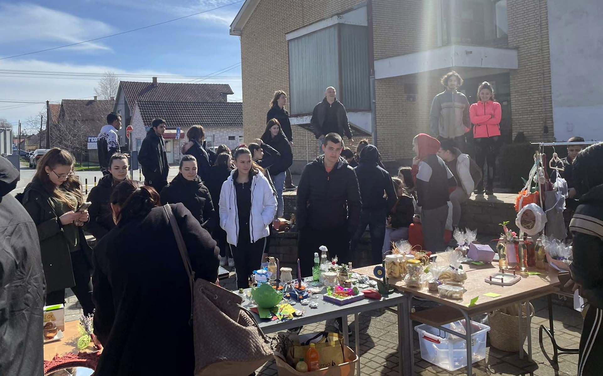 Štandovi sa uskršnjom dekoracijom, magnetima, knjigama, torbama i raznom drugom kućnom dekoracijom bili su 29. marta postavljeni na pećinačkom šetalištu, u okviru humanitarnog bazara koji su organizovali učenici srednje Tehničke škole „Milenko Verkić Neša“.