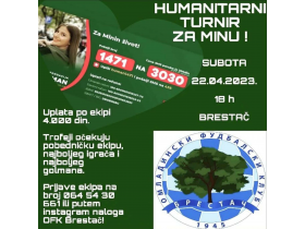 Omladinski fudbalski klub „Brestač“ organizuje u subotu, 22. aprila, sa početkom u 18.00 časova, humanitarni turnir za Minu Pošarac.
