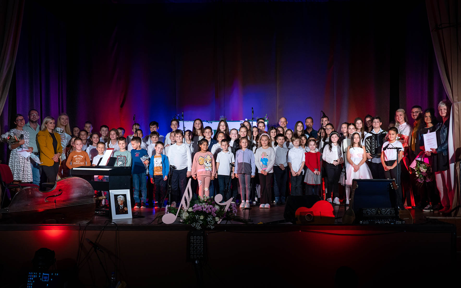 Program je svečanootvoren „Tošinom pesmom“ koju je izvela nastavnica klavira Ivana Ohmut sa mlađim horom, nakon čega su izveli još jednu pesmu „Prijateljstvo“. Natalija Prijić i Petar Dražić predstavili su se u klavirskom duetu, Aleksa Memedović na gitari, Veljko Plavšić na harmonici, Aleksa Dražić na tamburi i Vanja Jankov na klaviru. Gost Vid Ognjanović iz Rume izveo je dve kompozicije na klarinetu i violini, dok se Lana Spasenović po prvi put predstavila na klaviru. Nida Nešić je imala solističku tačku, Milica Pandur se predstavila na gitari, dok se na kraju drugog bloka predstavio čuveni tamburaški trio: Aleksa, Božidar i Matej.