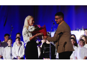 Koncert je završen horskim numerama u izvođenju svih učenika pećinačkog odeljenja muzičke škole nakon čega su nastvnicama dodeljeni prigodni pokloni.