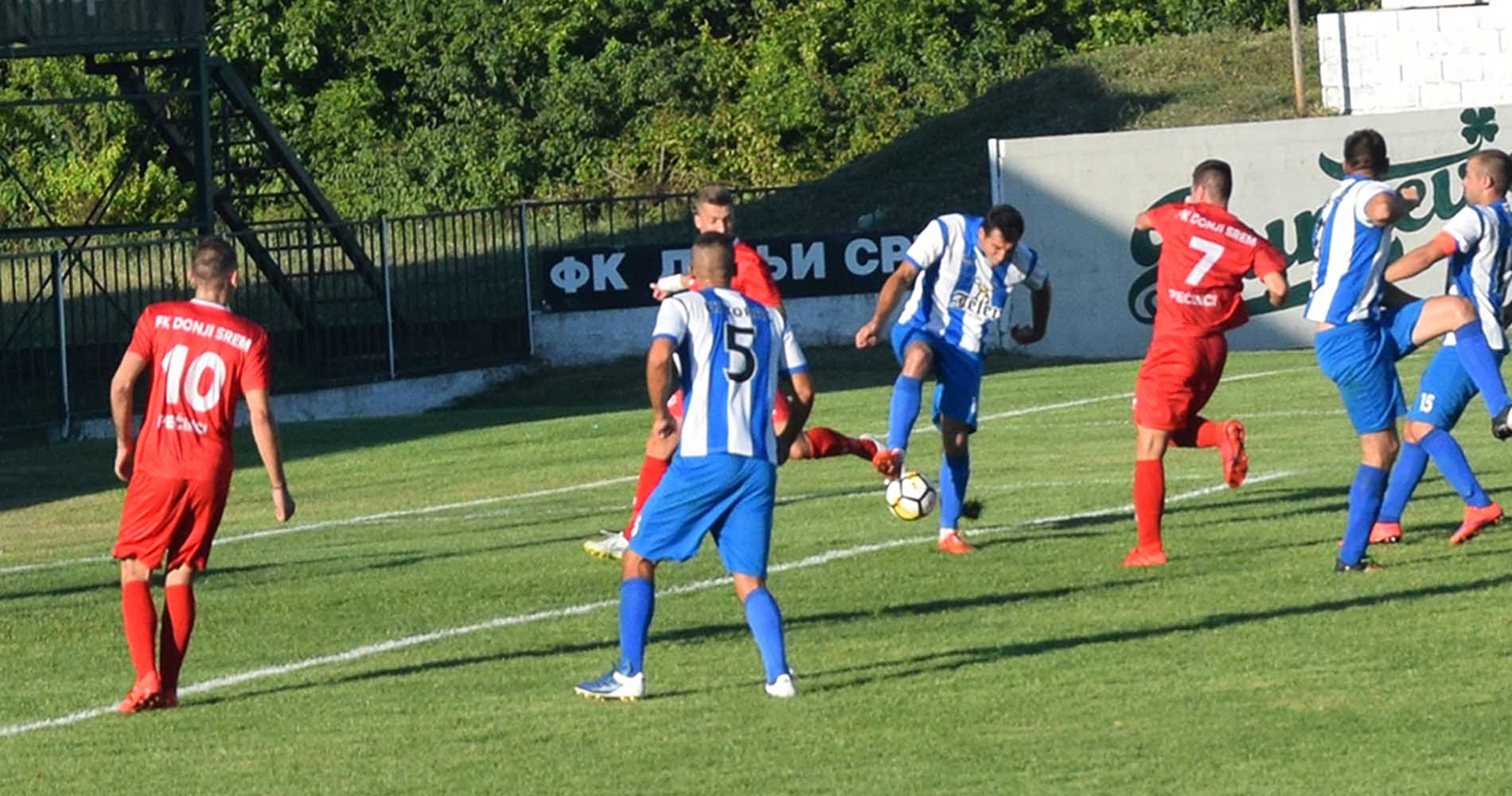 Фудбалери пећиначког Доњег Срема дочекали су јуче госте из Мартинаца ФК „Борац“ у првој утакмици у сремсколигашком друштву. Прво полувреме протекло је у бројним приликама домаћих фудалера, који су били видно физички спремнији. Тек у другом полувремену Доњи Срем 2015, материјализовао је своју иницијативу. У 50. минуту, Марковић је одлично реаговао на центаршут Максимовића. Петнаестак минуита касније одличан шут Душка Радосављевића искоса, са двадесетак метара од гола Јандрића за 2:0. Пет-шест минута касније, у истом нападу, Томшић и Џакић пропуштају сјајне прилике да смање предност домаћина. Коначно, у 80. минуту, својим другом голом Марковић поставља коначан резултат Доњи Срем 2015 – Борац 3:0 (0:)