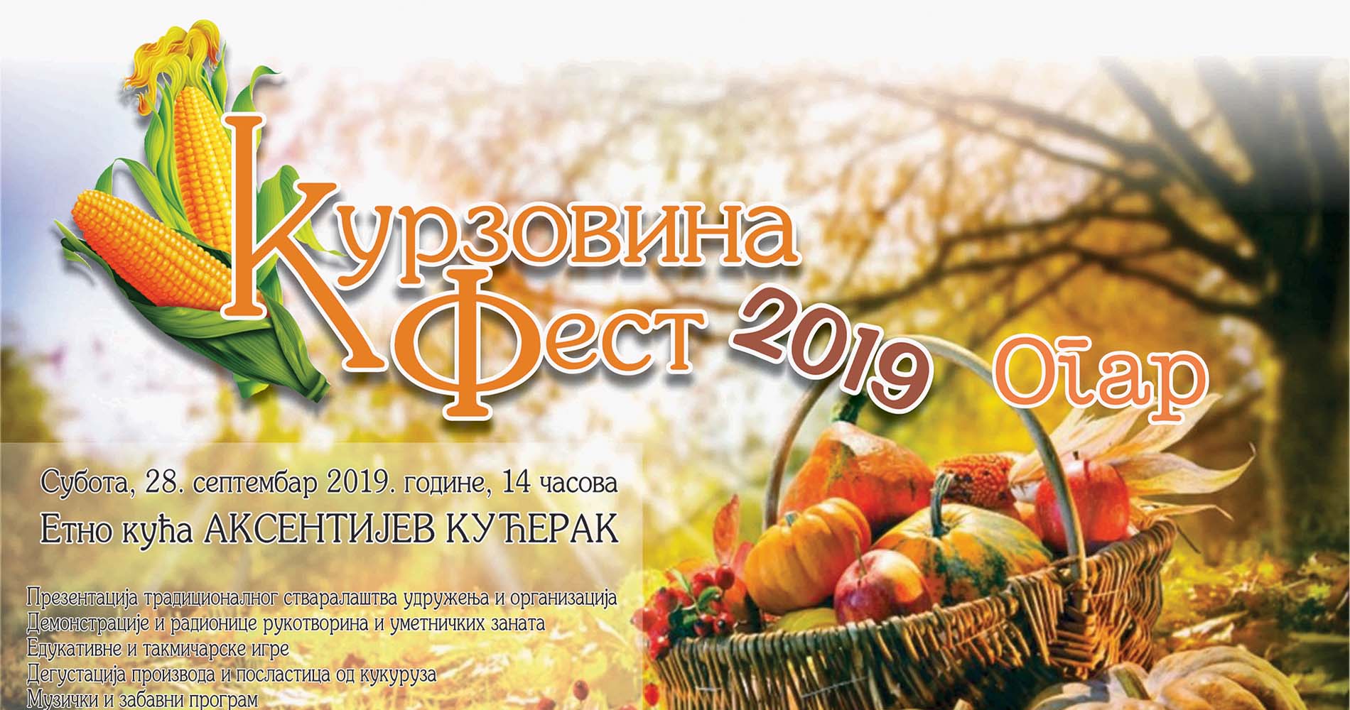 Двориште Аксентијевог кућерка у Огару сутра ће бити у знаку кукуруза и кукурузовине током треће манифестације под називом „Курзовина фест“, коју и ове године организује Туристичка организација општине Пећинци, под покровитељством Општине Пећинци, Покрајинског секретаријата за пољопривреду, шумарство и водопривреду и Савета месне заједнице Огар.