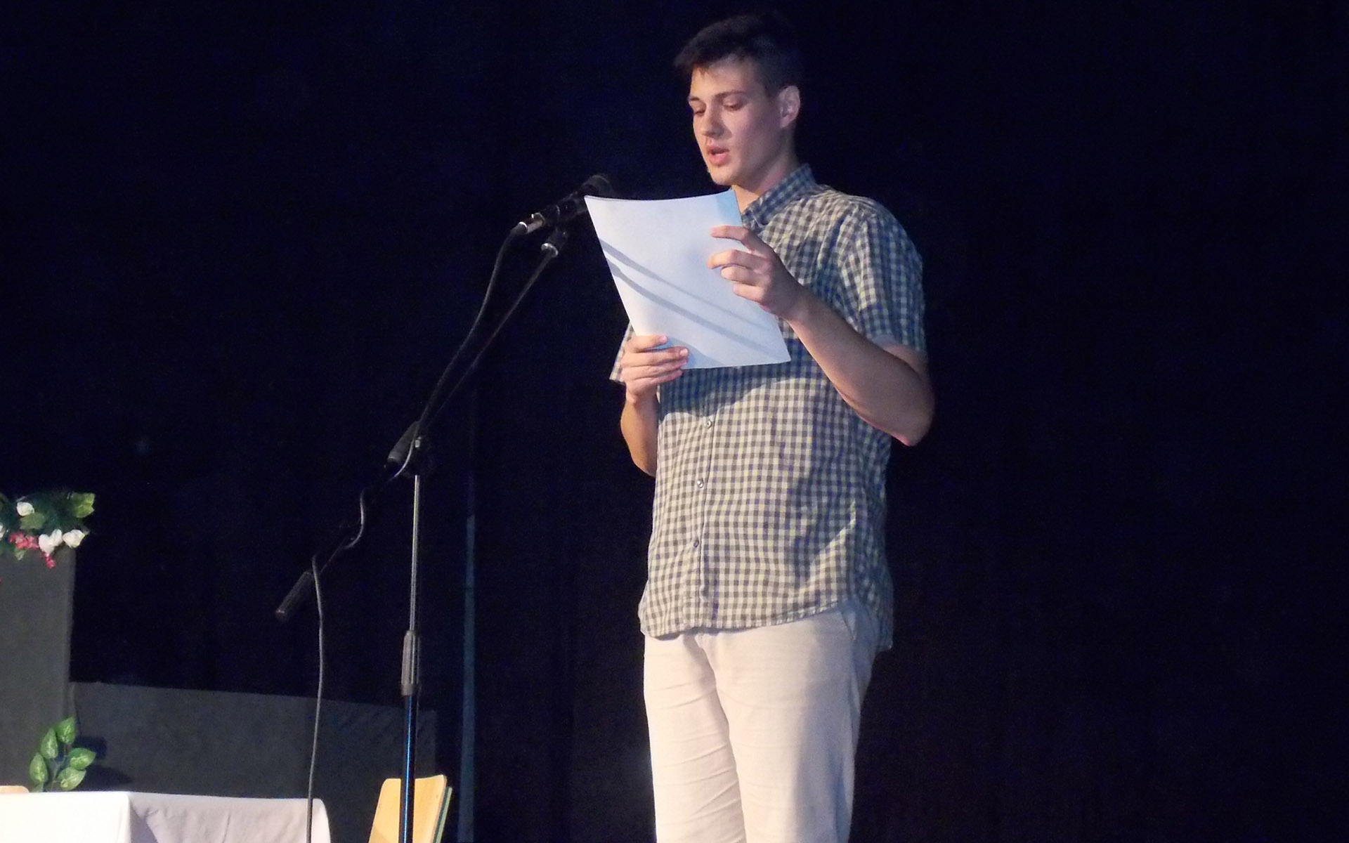 На самом почетку присутне је поздравио председник Ученичког парламента Борис Влај, који је том приликом рекао да су млади свесни колико је образовање важно, и том приликом цитирао Нелсона Менделу: “Образовање је најмоћније оружје које можете употребити да мењате свет”. Он се захвалио у име ученика директору, свим професорима који су стварали ову школу деценијама, и подсетио да се ова школа гради скоро 5 деценија и да су сви они, ученици и наставници, њени градитељи.