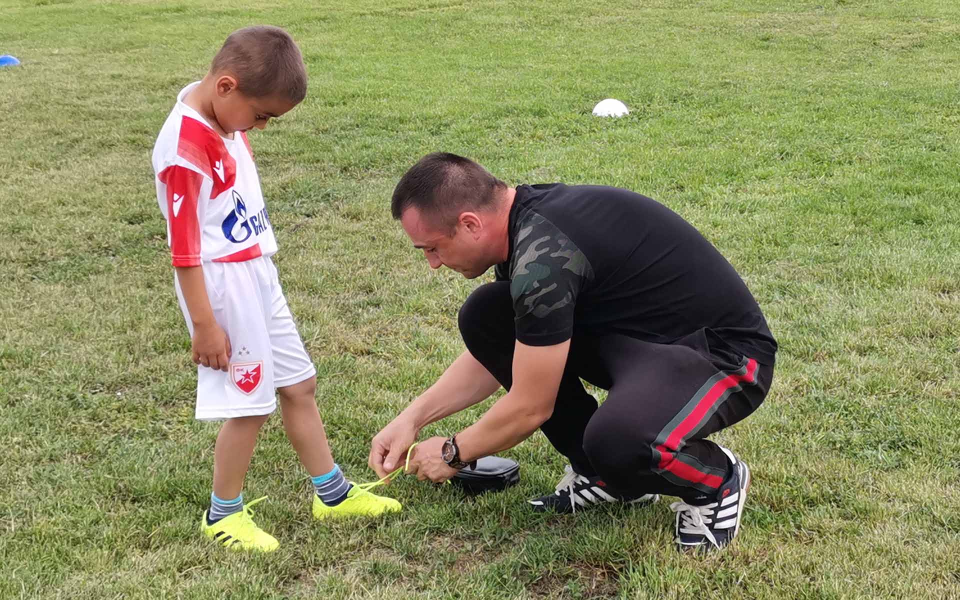 Тренер најмлађих фудбалера, Горан Мадацки, није крио задовољство, окружен децом, али и бројним саиграчима, који су му помагали у организацији првог тренинга.