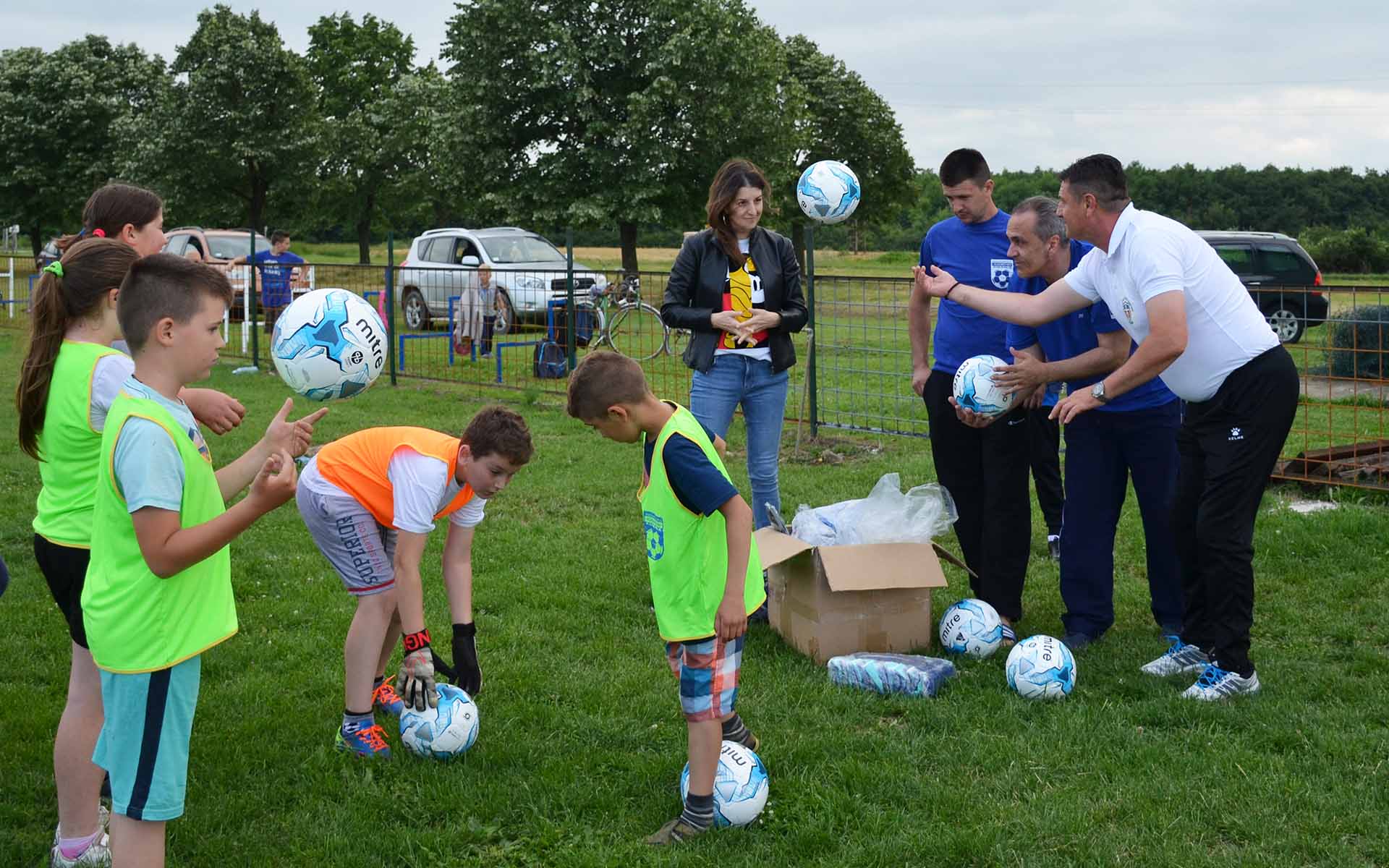 Након поделе маркера, дресова и лопти, Ђокић је са представницима клуба обишао и радове на игралишту Каменог, где је у току санација ограде, а дотрајале трибине се реновирају.