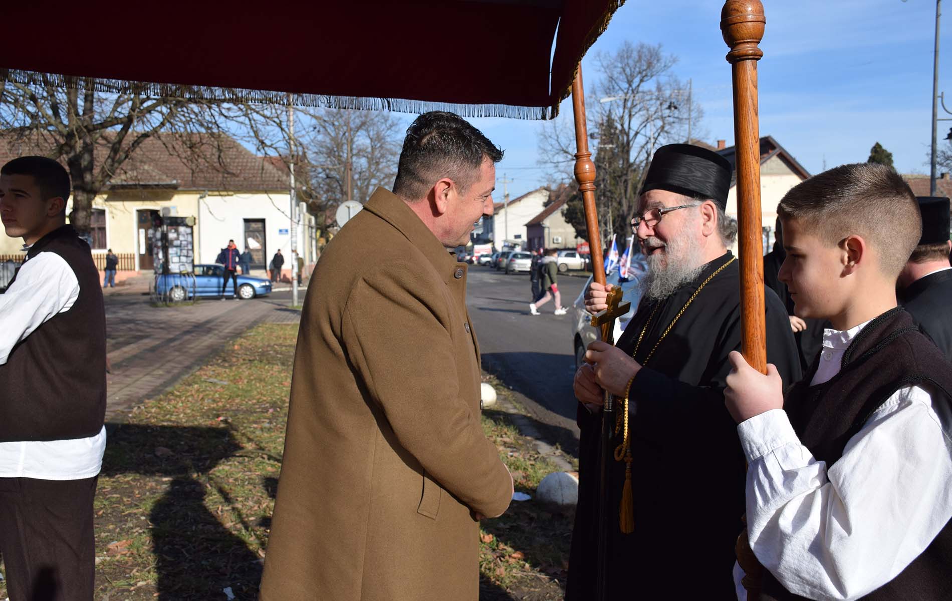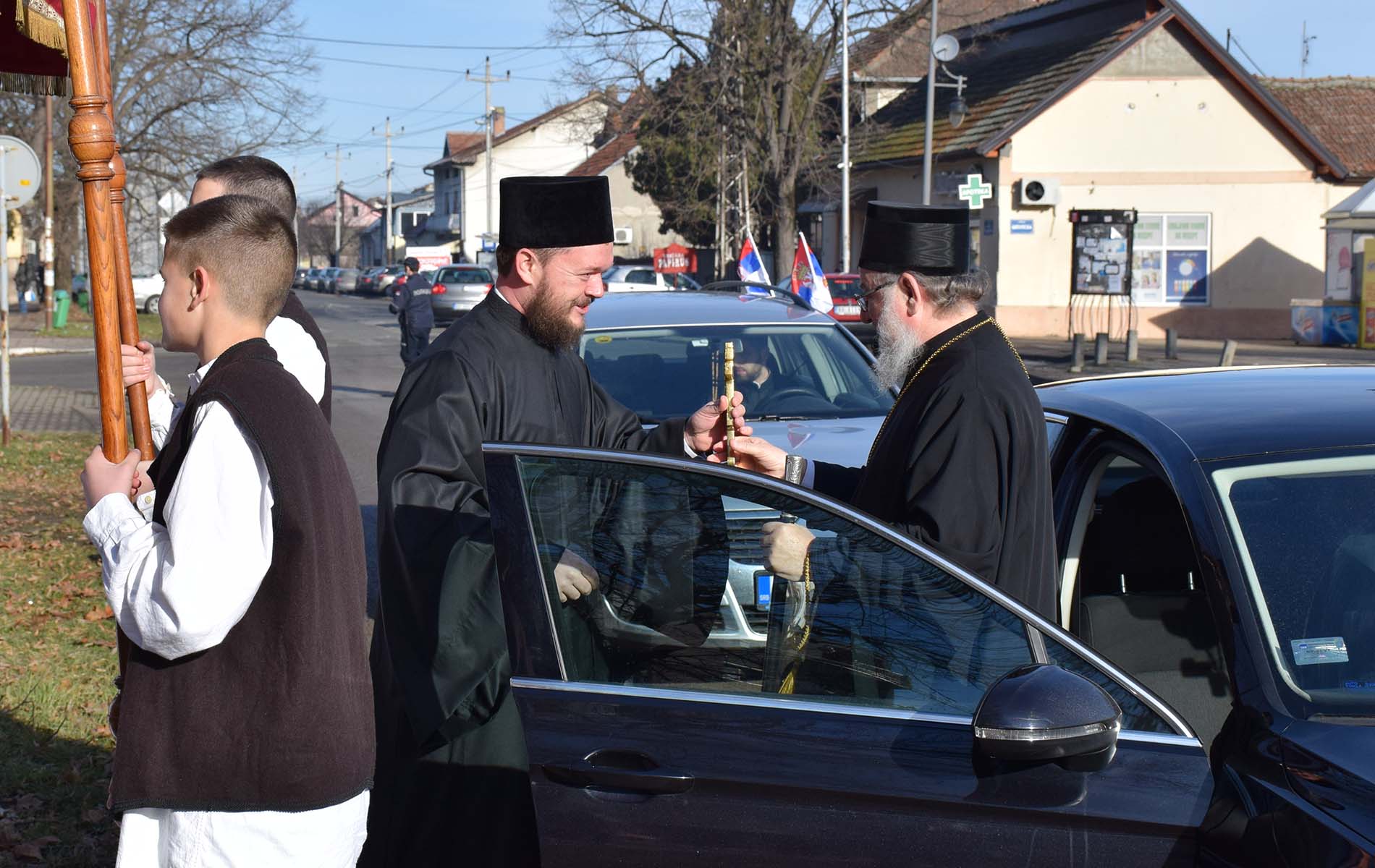 У храму Светог оца Николаја у Пећинцима, 21. јаунара, заједно са намесницима и свештенством Епархије сремске и верницима, епископа сремског Василија дочекао је и председник општине Пећинци Синиша Ђокић. Након дочека у храму, одржана је литија до парохијске сале у Пећинцима, где је одржан радни састанак на тему увођења електронског пословања у Епархији сремској.