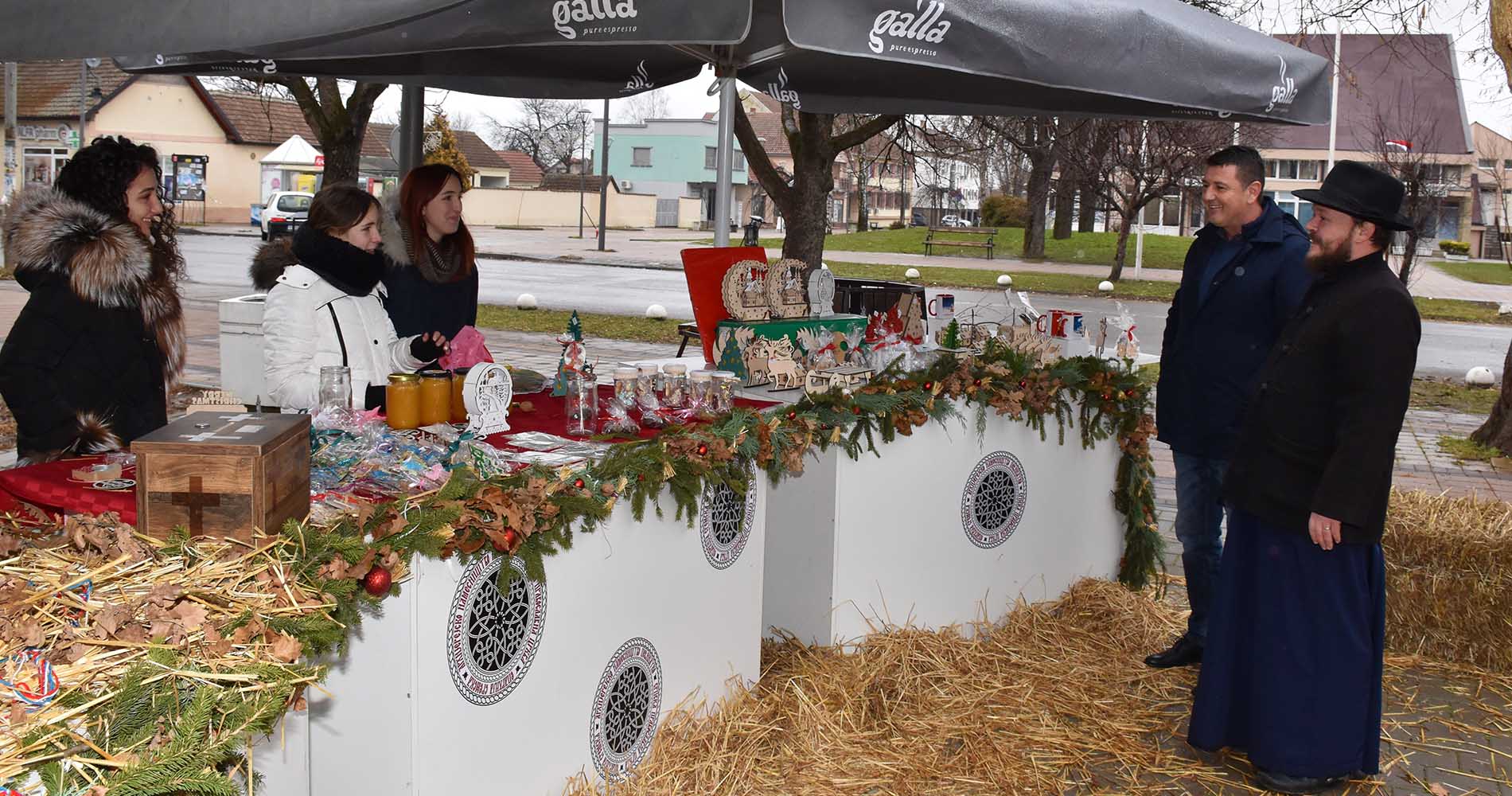 Председник општине Пећинци Синиша Ђокић обишао је данас Божићно сеоце постављено на тргу у Пећинцима, које је по први пут организовала Светосавска омладинска заједница (СОЗ) и Коло српских сестара при Архијерејском намесништву пећиначком.