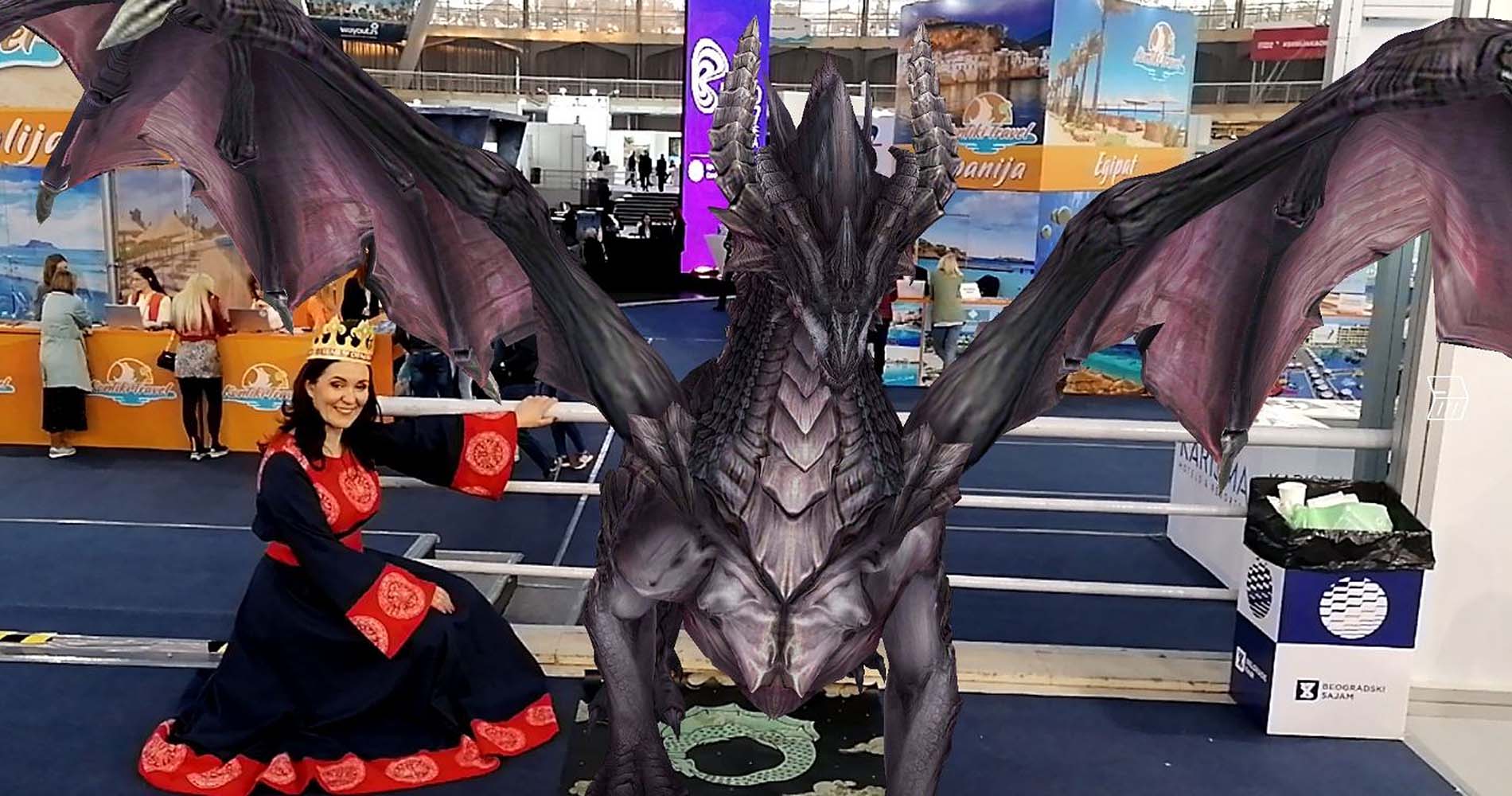 Наиме, сви посетиоци сајма који су узели разгледницу ТО Пећинци могли су у тзв. проширеној реалности уживо да се упознају са Змајем од Купиника, па чак и да се са њим фотографишу за успомену, а све то путем апликације Холоград.
