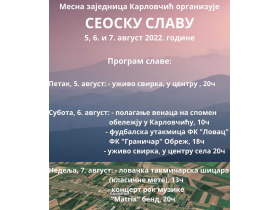Вечерашњом свирком у центру Карловчића, од 20.00 часова, почиње програм обележавања сеоске славе у овом насељу, у организацији Савета месне заједнице Карловчић и Општине Пећинци.