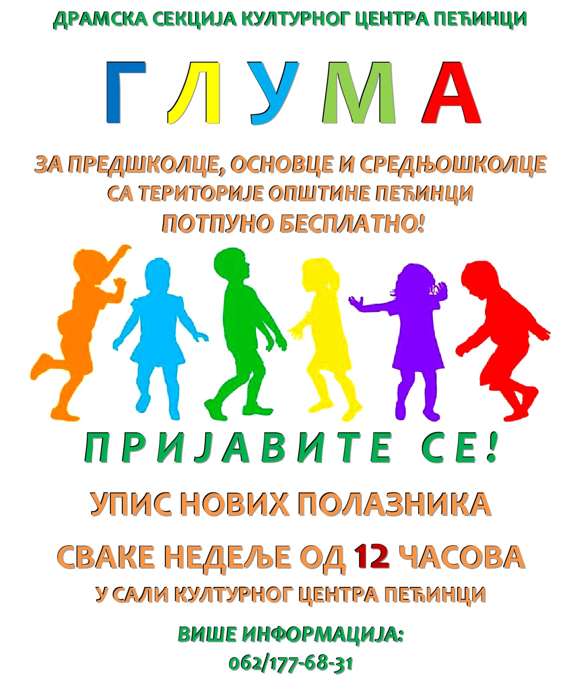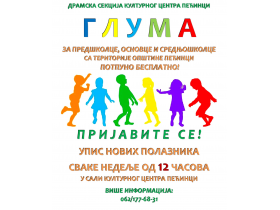 И ове школске године Културни центар Пећинци омогућио је за децу предшколског, основношколског и средњошколског узраста са територије пећиначке општине прилику да стекну основна знања из области глуме. Упис нових полазника у Драмску секцију КЦ вршиће се сваке недеље почевши од 11. септембра са почетком у 12.00 часова, а секција ће се одржавати недељом од 12.00 до 15.00 часова на сцени пећиначког Културног центра
