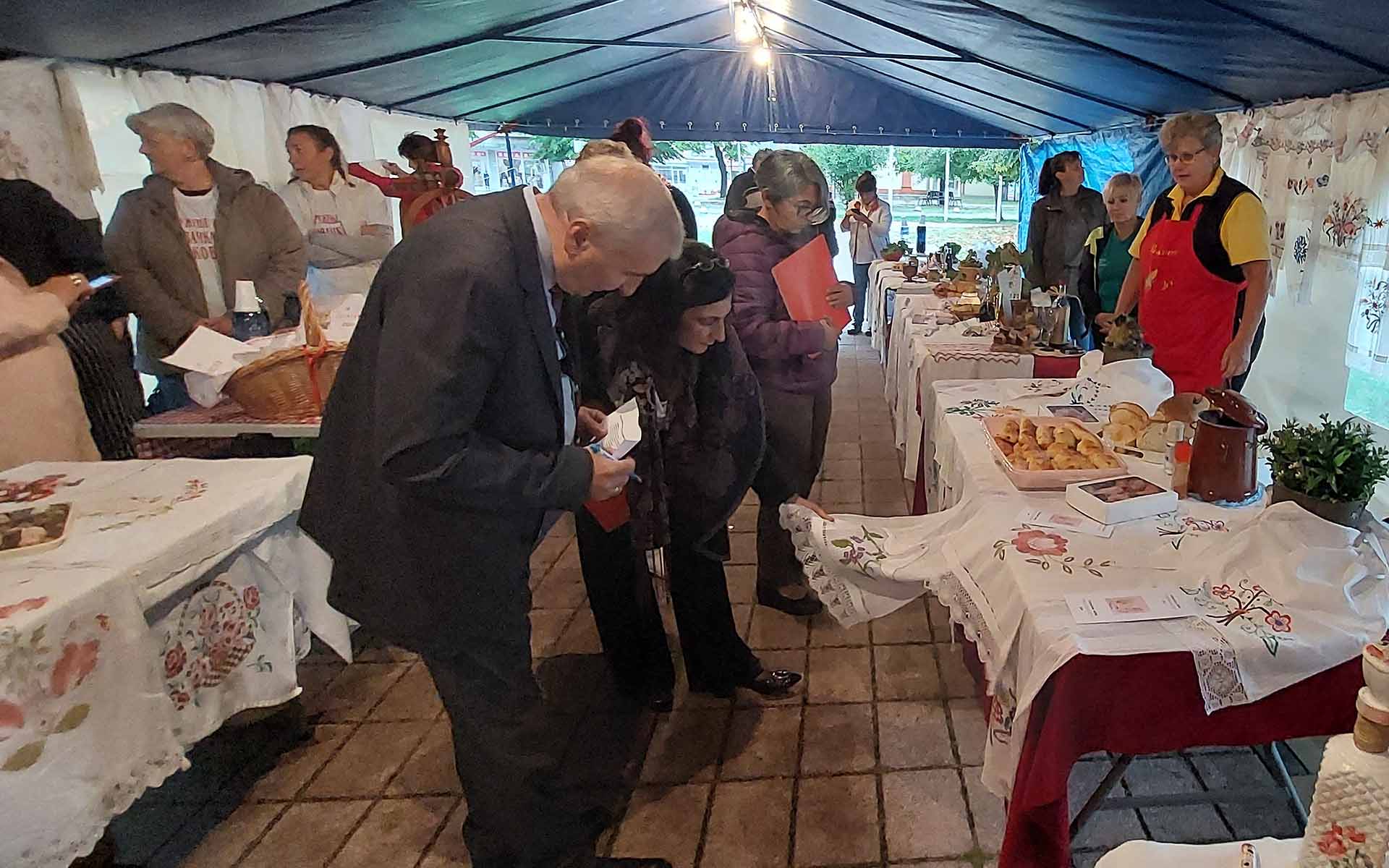 Штандови 12 удружења жена богато су била украшена везеним пешкирима које су обишли и оцењивали Дубравка Ковачевић Суботички, председница Скупштине општине Пећинци, Јован Деврња, директор КЦ Пећинци и Душанка Станковић, етнолог у Заводу за заштиту споменика културе у Сремској Митровици по чијим речима је значај обредних пешкира у Срему некада био велики, јер су они имали своју функцију у сваком домаћинству, док су данас значајни са етнолошког становишта као музејски експонати.