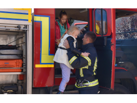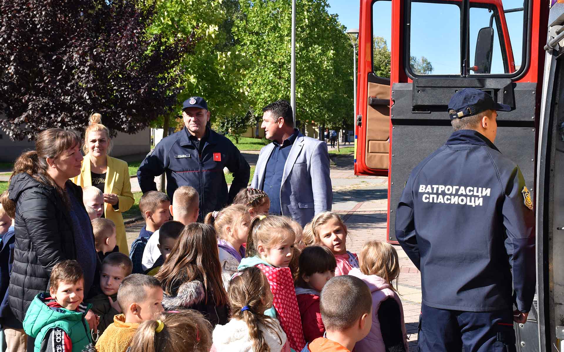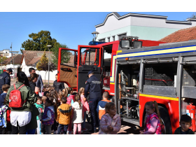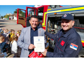 Деца и грађани су били у прилици да разгледају ватрогасно возило и опрему, а ватрогасци су деци поделили промотивни материјал Породични приручник за понашање у ванредним ситуацијама, као и бојанку за најмлађе Азбуку безбедности за ђаке прваке.