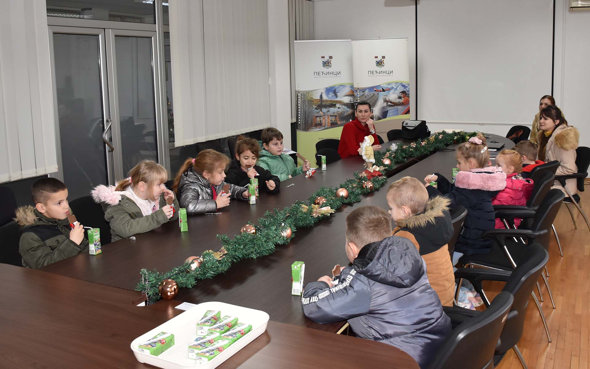Уз чоколадице и сокиће, пажњу предшколаца држао је Душан Срећков из општинске Службе са односе са јавношћу, који их је упознао са грбом Општине Пећинци и његовим значењем, као и са значајним индустријским, природним, социјалним и културним обележјима пећиначке општине.