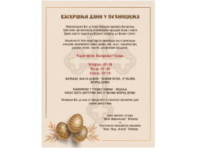 Фарбање јаја са децом је сутра, на Велики петак, у 12 часова, а такмичење у куцању јајима је у недељу, на Ускрс, око 11 часова.