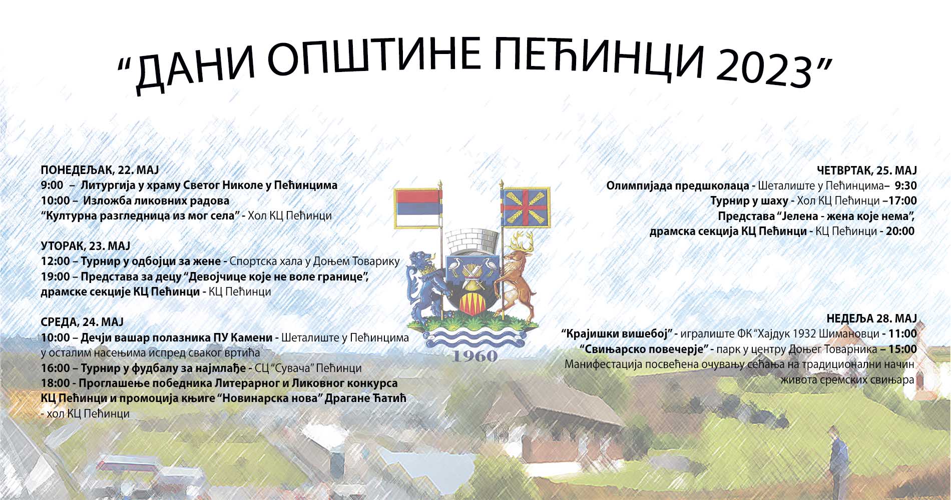 - 11.00, “Крајишки вишебој” на игралишту ФК Хајдук у Шимановцима