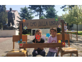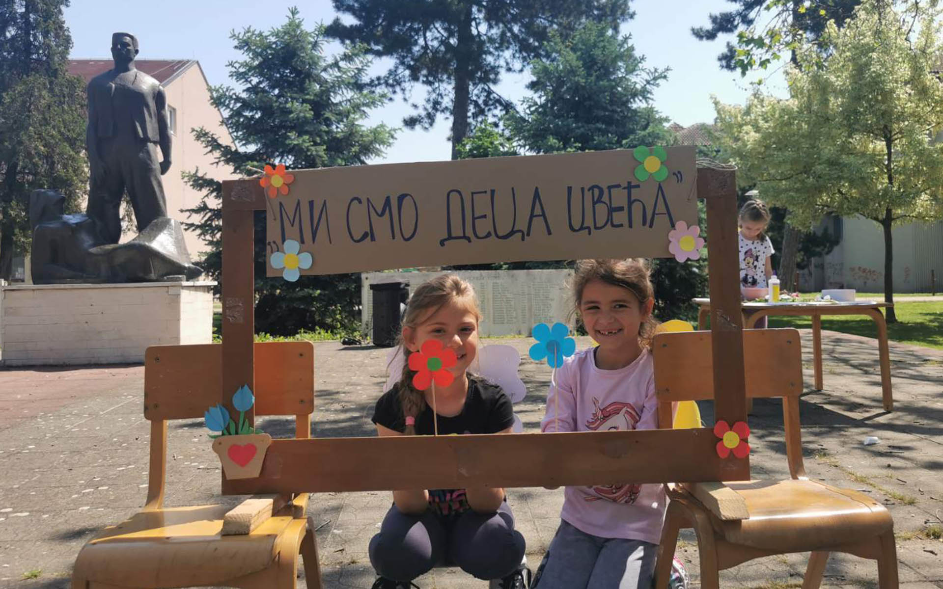 Поводом Дана општине Пећинци, полазници Предшколске установе “Влада Обрадовић Камени” из Пећинаца јуче су на платоу испред споменика у центру организовали ликовну и драмску радионицу на тему “Ми смо деца цвећа”, током које су правили круне од цвећа и израђивали костиме од лептира, да би затим драматизовали причу “Бајка о расцветалој ливади”.