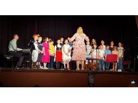 Ученици са одсека клавира, тамбуре, гитаре и хармонике су се представили соло тачкама, дуетима и једним квартетом, а цео концерт је био уоквирен хорским нумерама са солистима.