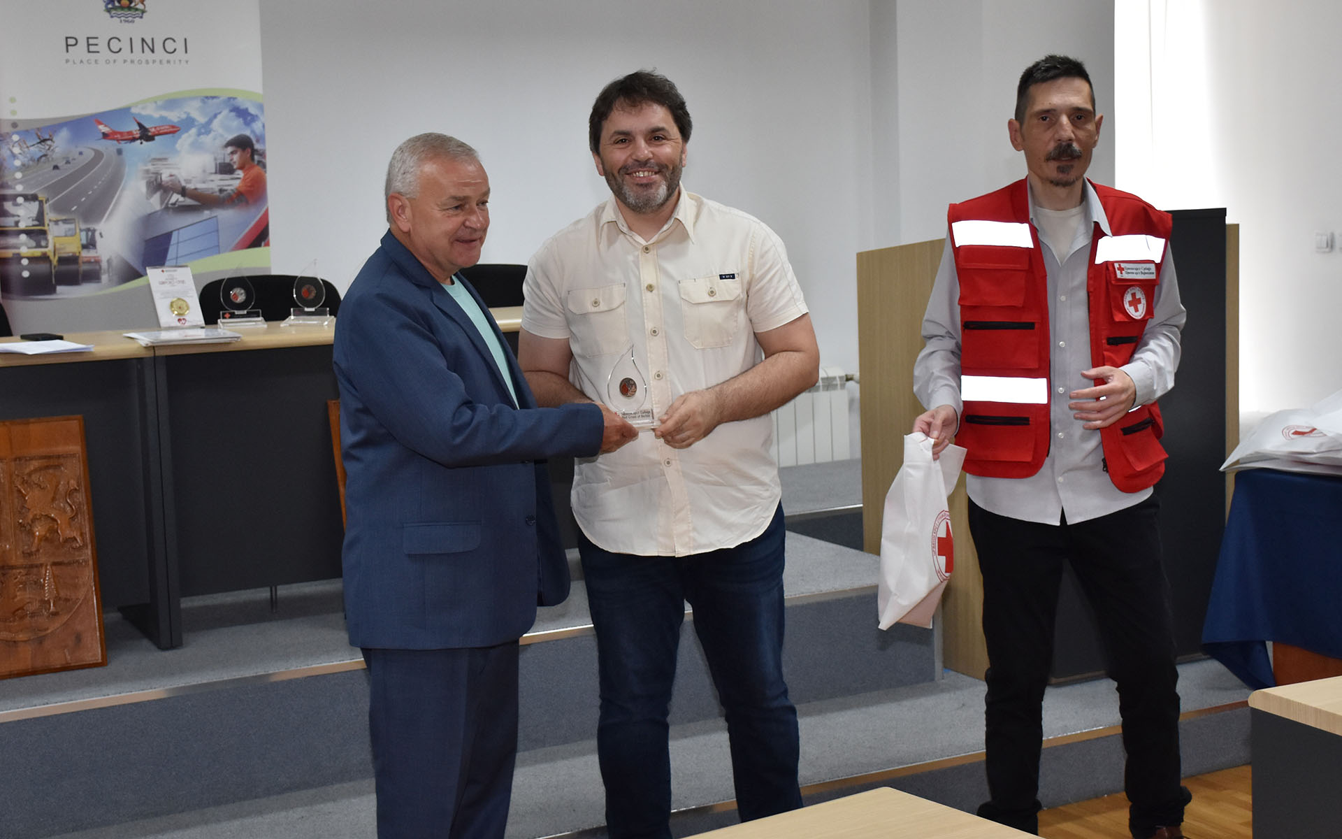 Црвени крст Пећинци организовао је данас у сали Скупштине општине Пећинци свечано уручење награда добровољним даваоцима крви са територије пећиначке општине. Награде је уручио заменик председника општине Пећинци Зоран Војкић, који се том приликом захвалио добровољним даваоцима на хуманости, а Црвеном крсту на преданости са којом организују сваку акцију.