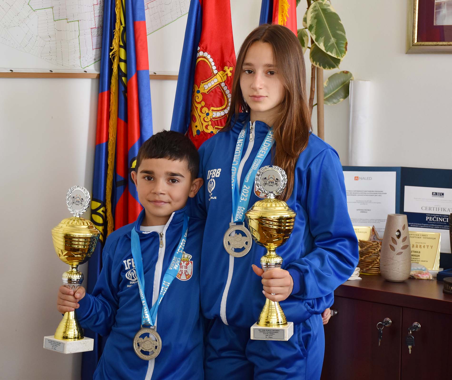 Председник Општине Пећинци Синиша Ђокић примио је јуче Зорана Кирића и Милицу Грубор, младе такмичаре шимановачког клуба „Топ форма“, који су на недавно одржаном Светском првенству за млађе узрасте у дечјем фитнесу освојили сребрне медаље.
