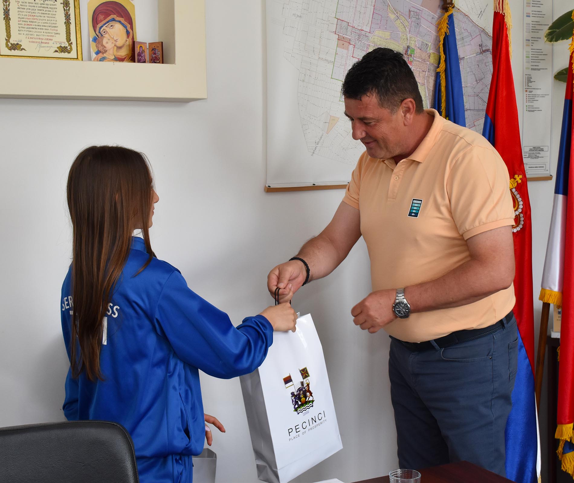 Он је том приликом Зорану и Милици уручио на поклон тренерке и мајице и захвалио им се на оствареном успеху на који, како је рекао, сви можемо да будемо поносни.