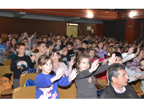 У Културном центру Пећинци Пажљивко се јуче дружио са првацима из све три основне школе са територије пећиначке општине током интерактивне представе коју су и ове године организовали Савет за безбедност саобраћаја Општине Пећинци и републичка Агенција за безбедност саобраћаја из Београда.