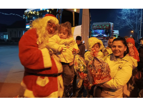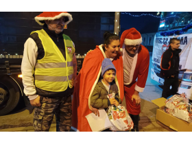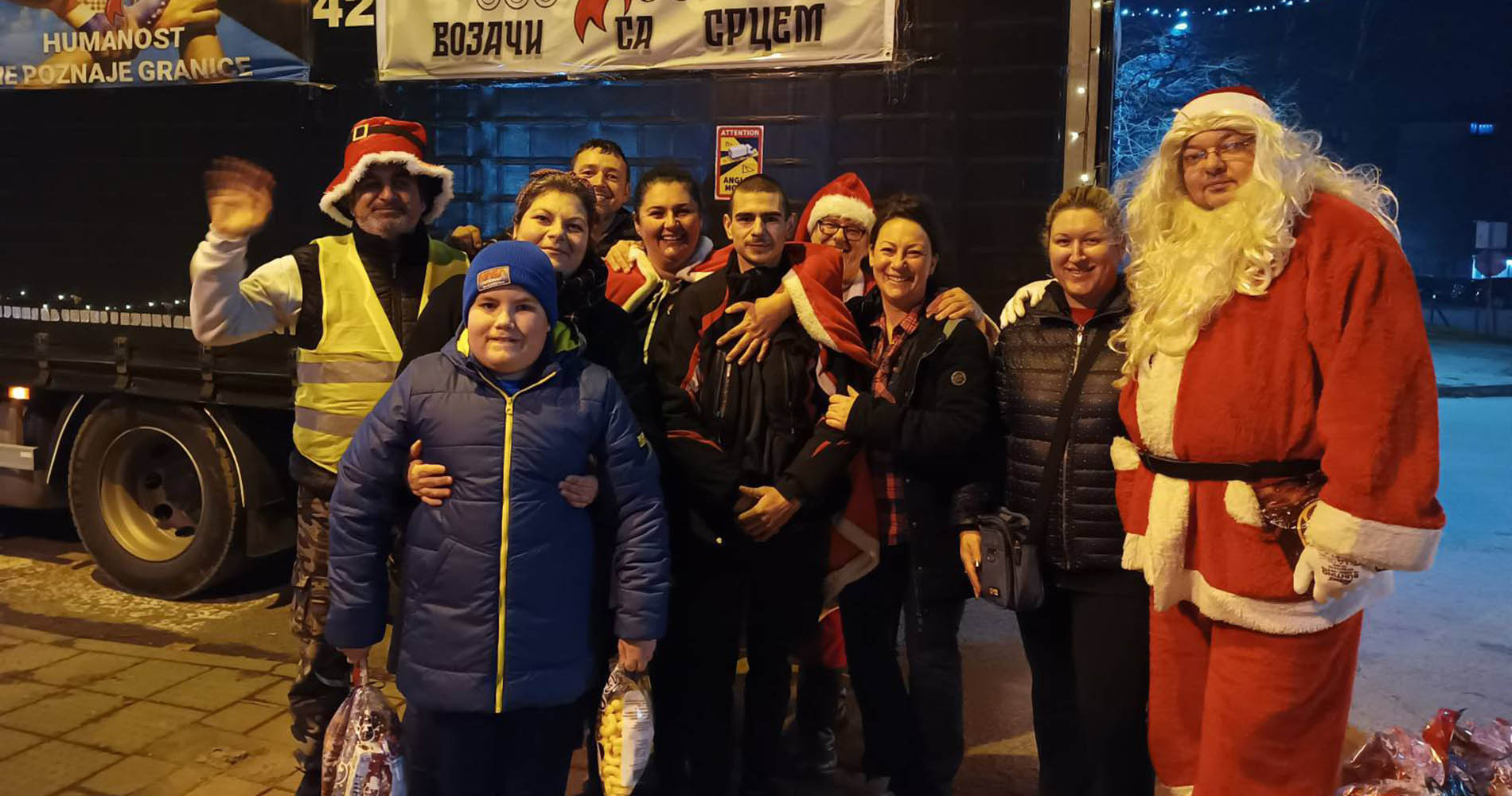 Ове године, конвој је у центру Пећинаца делио пакетиће деци из пећиначког удружења “Разликовница”.