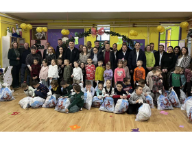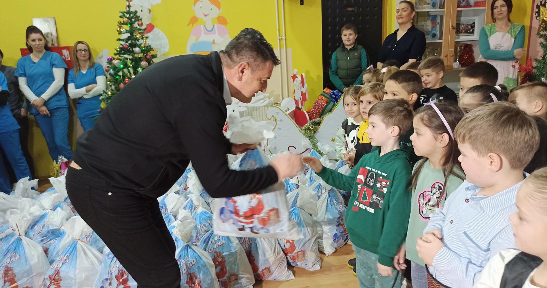 Председник Ђокић је том приликом уручио 160 пакетића деци из Предшколске установе „Весело детињство“ из Лешка, које је донирала Општина Пећинци.