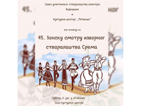 Зонска смотра фолклорних традиција Срема биће ове године одржана 45. пут у суботу, 8. јуна, од 18.00 часова, у Културном центру Пећинци.