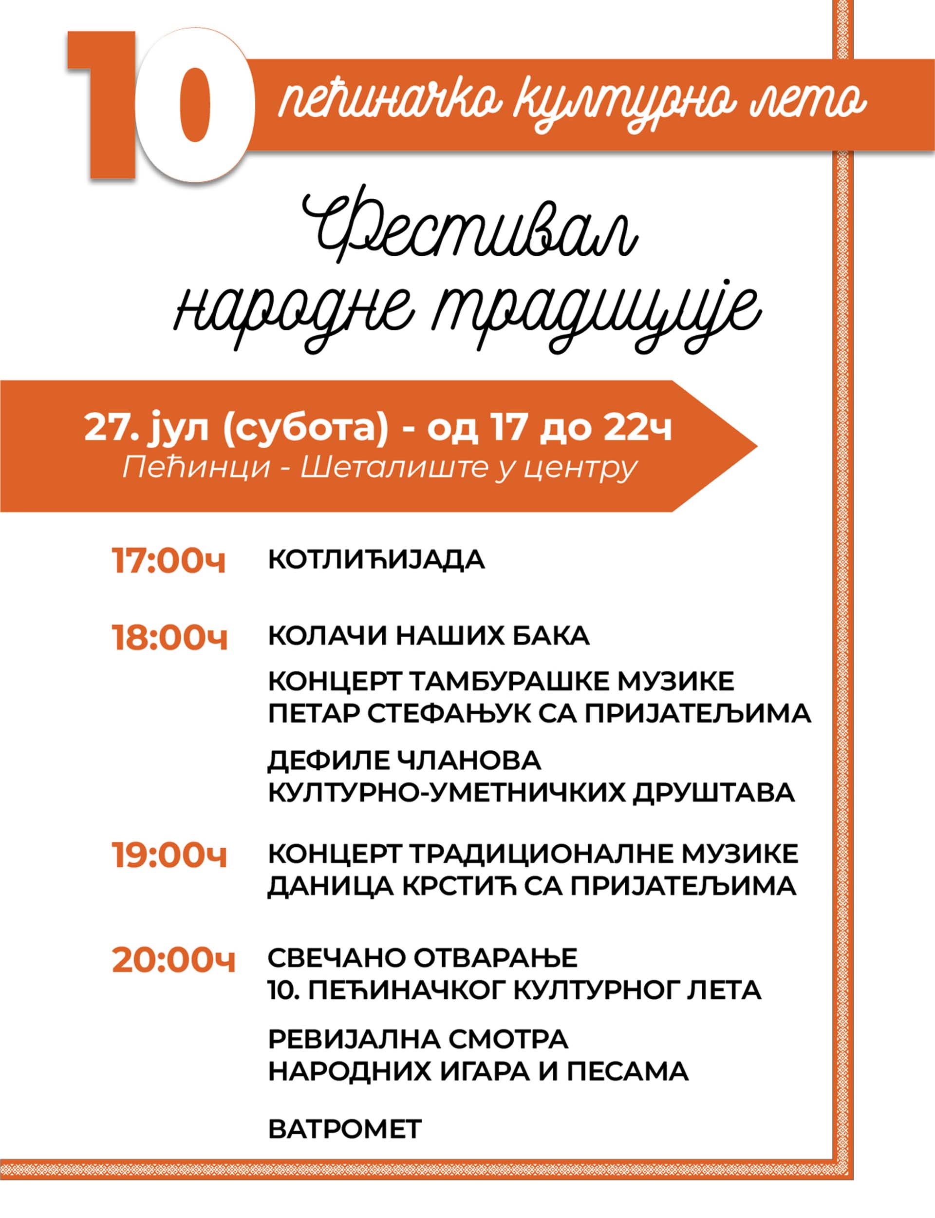 Отварање 10. Пећиначког културног лета 27. јула