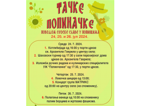 За обележавање сеоске славе Месна заједница Попинци је у сарадњи са ФК “Напредак”, Ловачким друштвом Попинци, Удружењем жена “Попинчанке” и Туристичком организацијом општине Пећинци, припремила тродневни програм обједињен под називом „Тачке попиначке“.