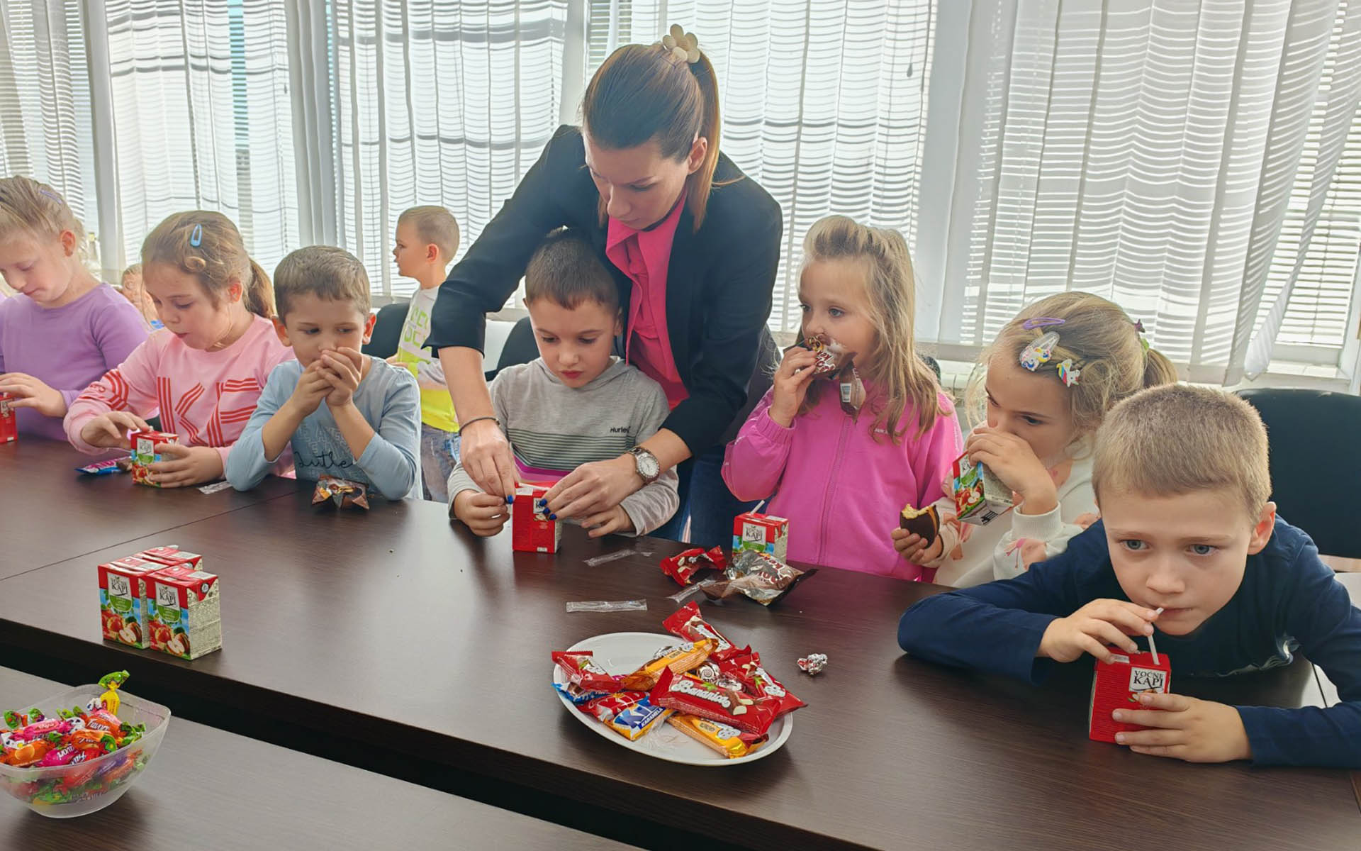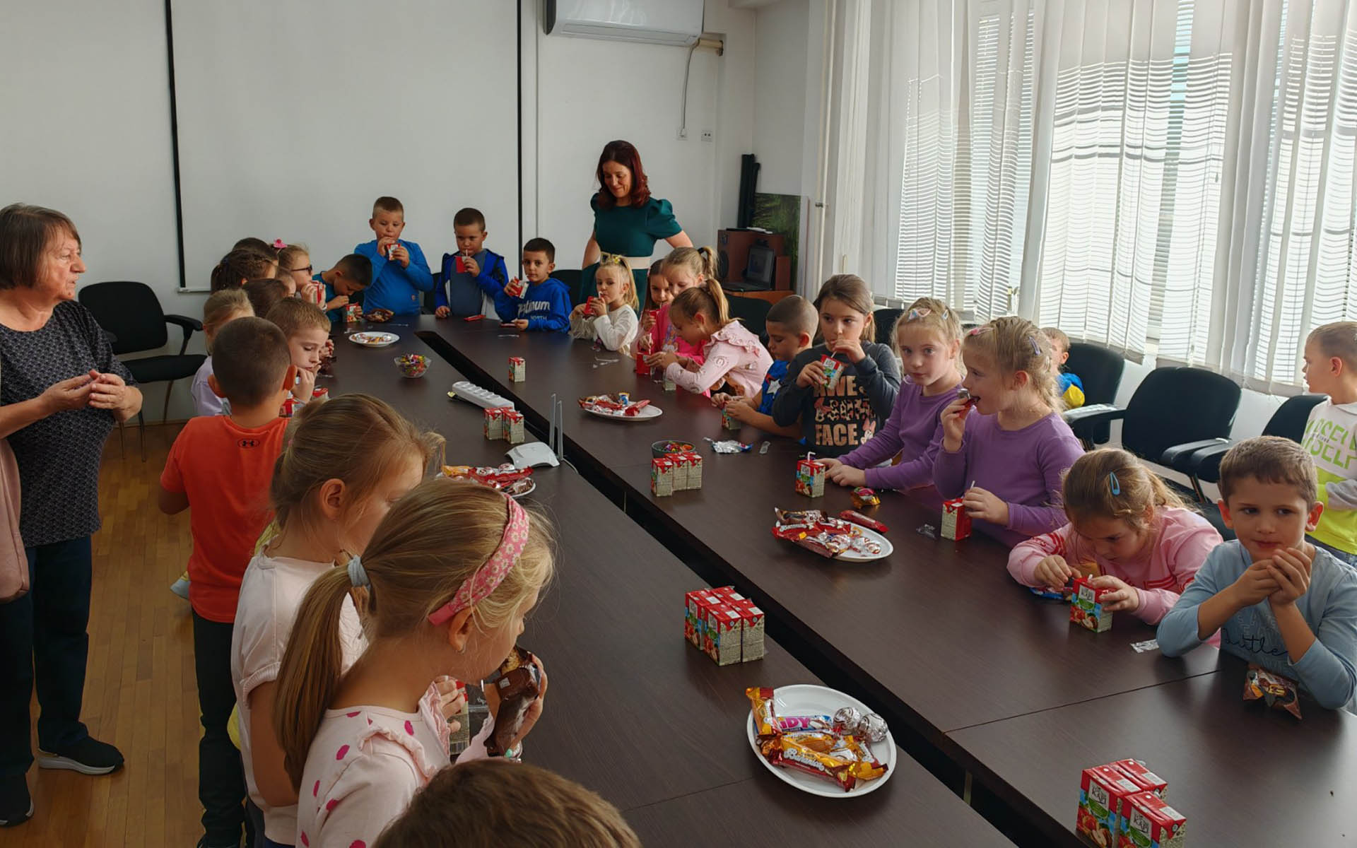 Пећиначки малишани припремили су три песмице за своје домаћине, да би затим сви заједно отпевали песмицу Банета Росића о пећиначкој општини „Предео где природа грли историју“. Након веселих нота уследило је послужење за најмлађе.