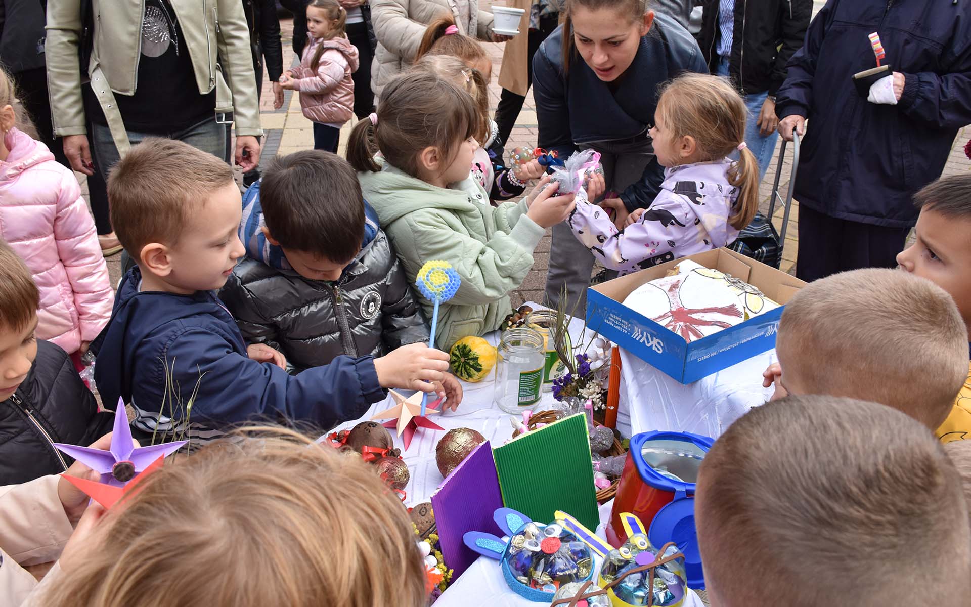 Живописни штандови у јесењим мотивима полазника Предшколске установе „Влада Обрадовић Камени“ оживели су данас пећиначко шеталиште поводом обележавања Дечије недеље.