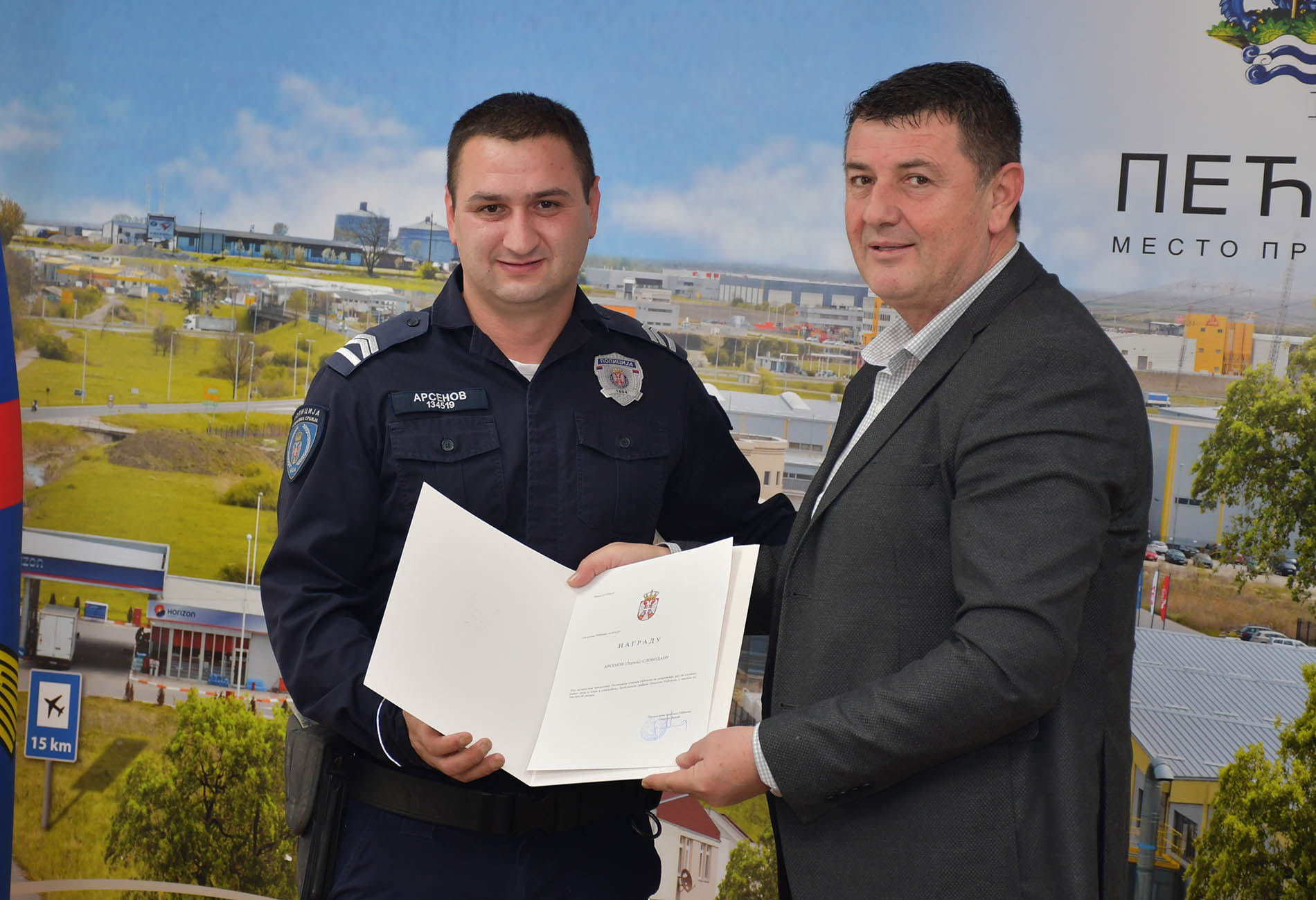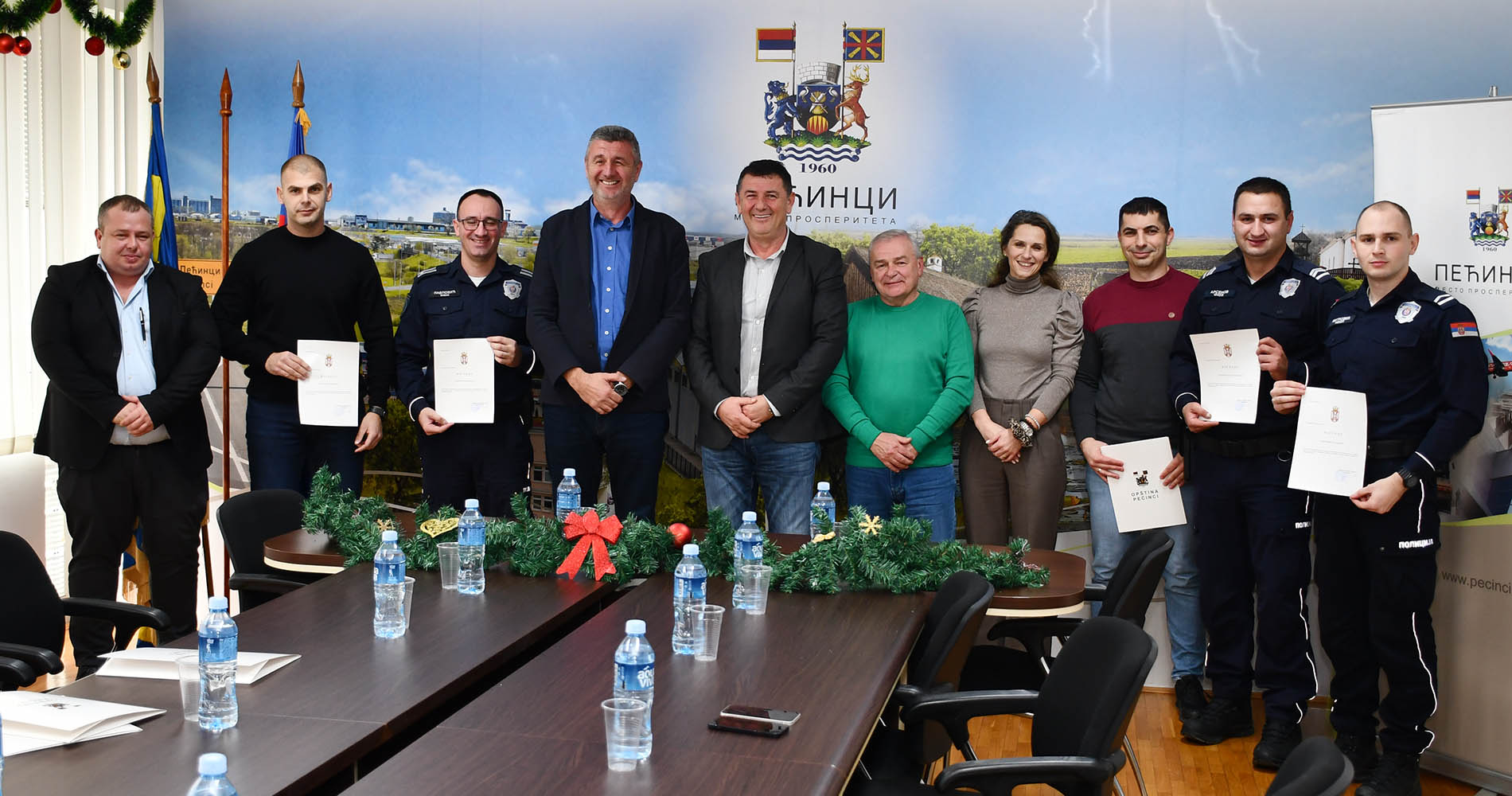 Председник општине Пећинци Синиша Ђокић уручио је јуче захвалнице и новчане награде припадницима Министарства унутрашњих послова, Полицијске испоставе Пећинци, који су се у овој години истакли својим радом на очувању јавног реда и мира и безбедности грађана пећиначке општине, а свечаности је присуствовао и начелник Полицијске управе Сремска Митровица Ђура Мандић.