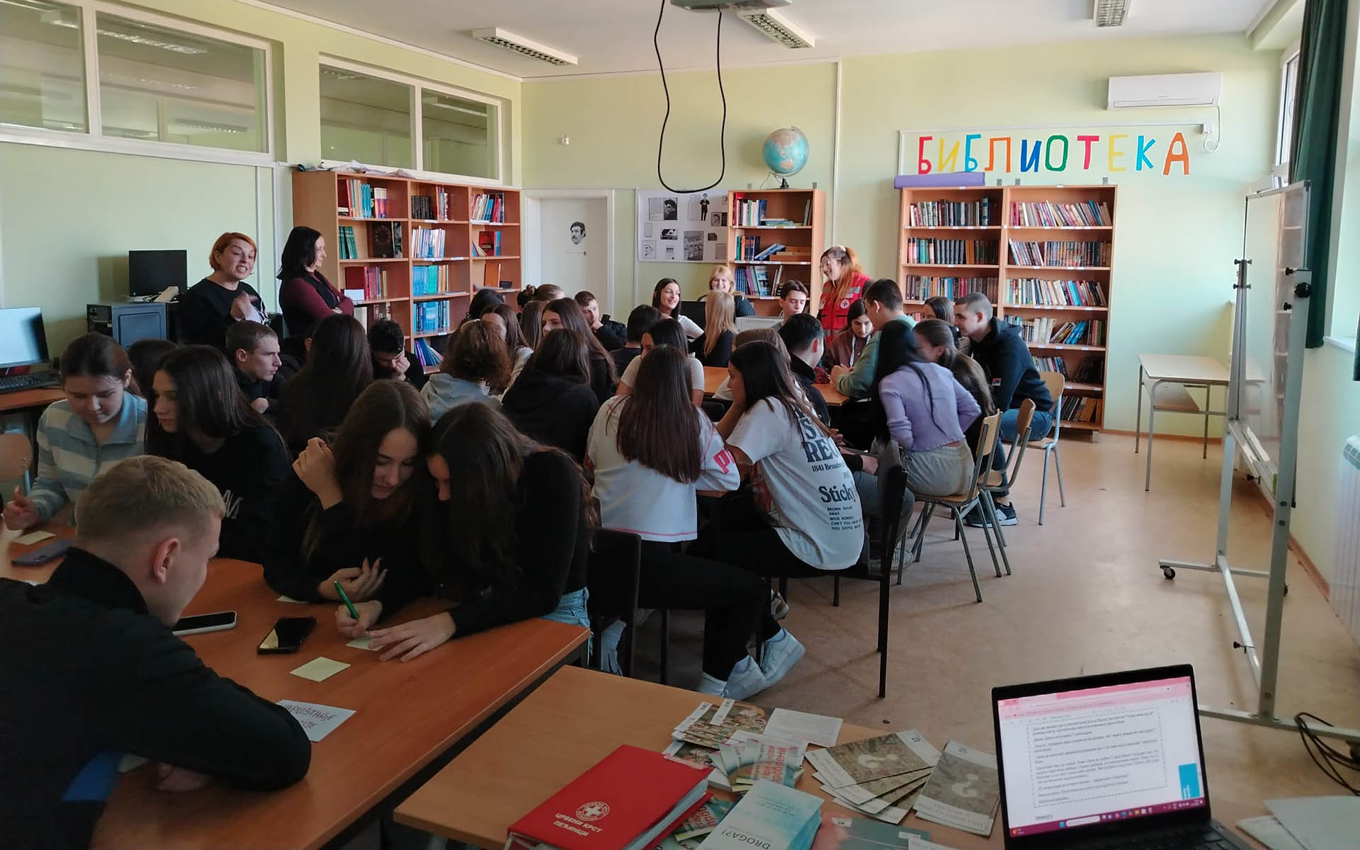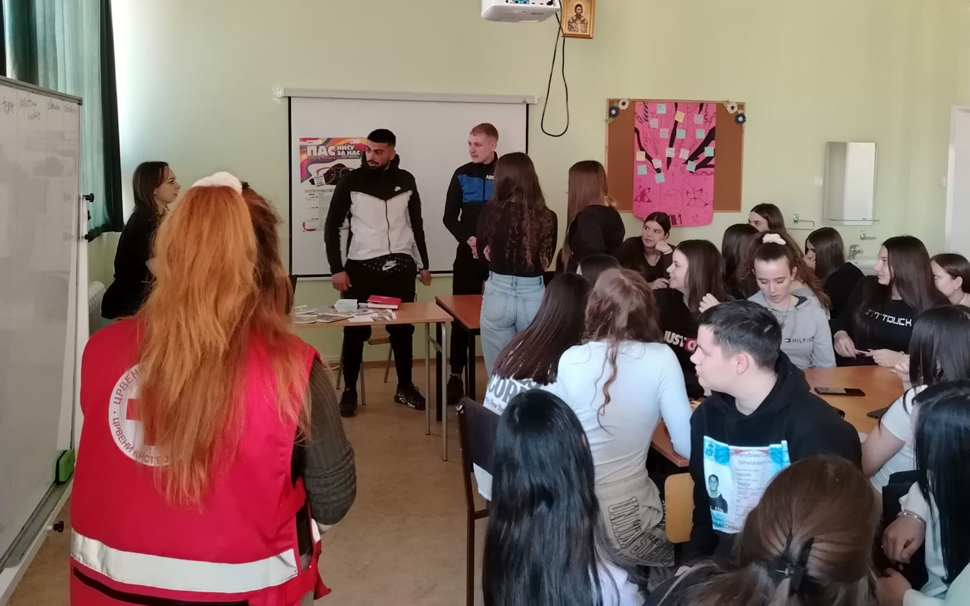 „Радионица се састојала из два дела. Најпре су ученици информисани о психоактивним супстанцама: појам, врсте, последице коришћења и сл. након чега су подељени у неколико група и добили задатак да напишу како би они поступили у рањивој ситуацији, у којој их познаник, пријатељ, странац, члан породице, наговара на злоупотребу психоактивних супстанци. Одговори су се делили на 6 начина: јасно и отворено, духовито, образложење, давање алтернативе, напуштање ситуације, промена теме. На крају је одрађена евалуација са учесницима где су они уз дискусију и изношење свог мишљења дошли до заједничких закључака који су бележени на табли. Постоје бројни разлози због којих млади пробају дроге: радозналост, притисак вршњака, покушај да се уклопе у одређено друштво, као вид побуне, да би привукли пажњу или из других разлога. Најбољи начин превенције од злоупотребе психоактивних супстанци је што већа информисаност младих, што је и циљ оваквих радионица које Црвени крст спроводи“ – казала је Коњевић, и додала да су повратне информације са ове радионице биле позитивне са посебним нагласком на важност наставка сличних едукативних иницијатива.