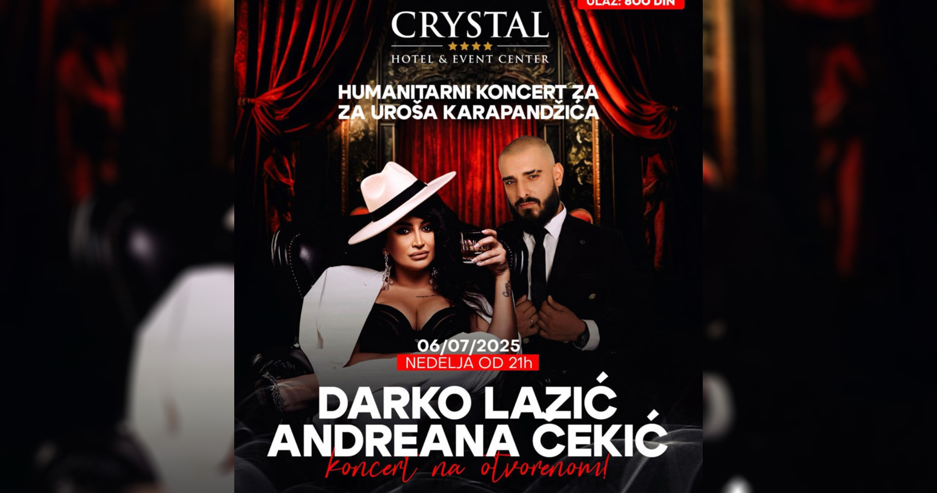 Концерт почиње у 21.00 час, а наступиће звезде естраде Дарко Лазић и Андреана Цекић.
