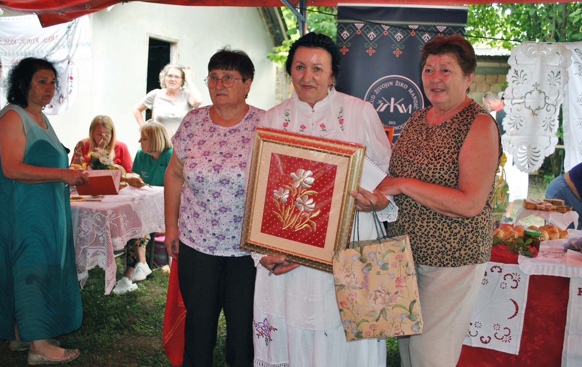 “Прошле године смо први пут били на Кифлицијади и толико смо били одушевљени, да смо одлучили да више не пропуштамо прилику да поново дођемо. Ове године смо донели домаћинима слику у златовезу по коме смо познати, извезену за наше пријатељице из УЖ Мајка Ангелина” – рекла нам је Катарина Хорват из КУД “Живојин Жика Мандић” Кнежеви Виногради из Барање.