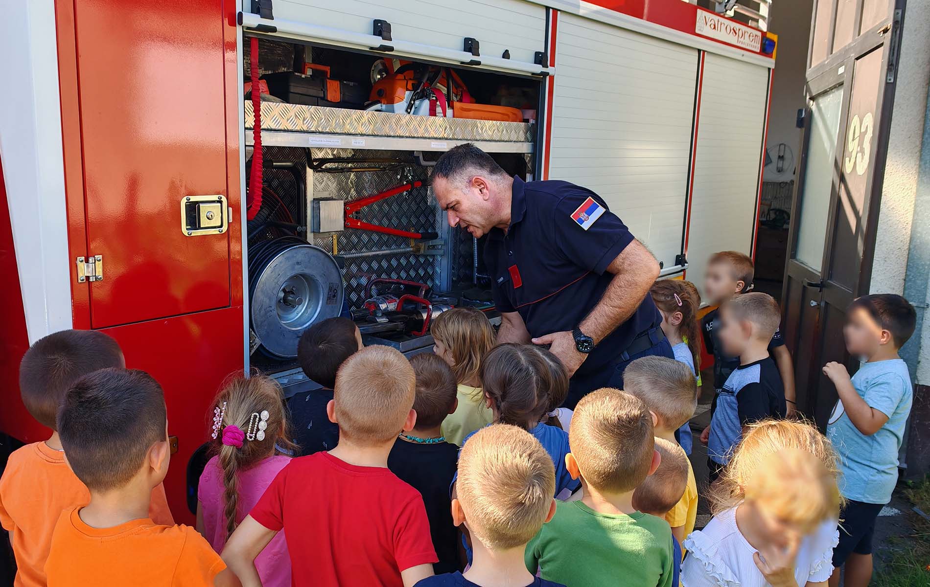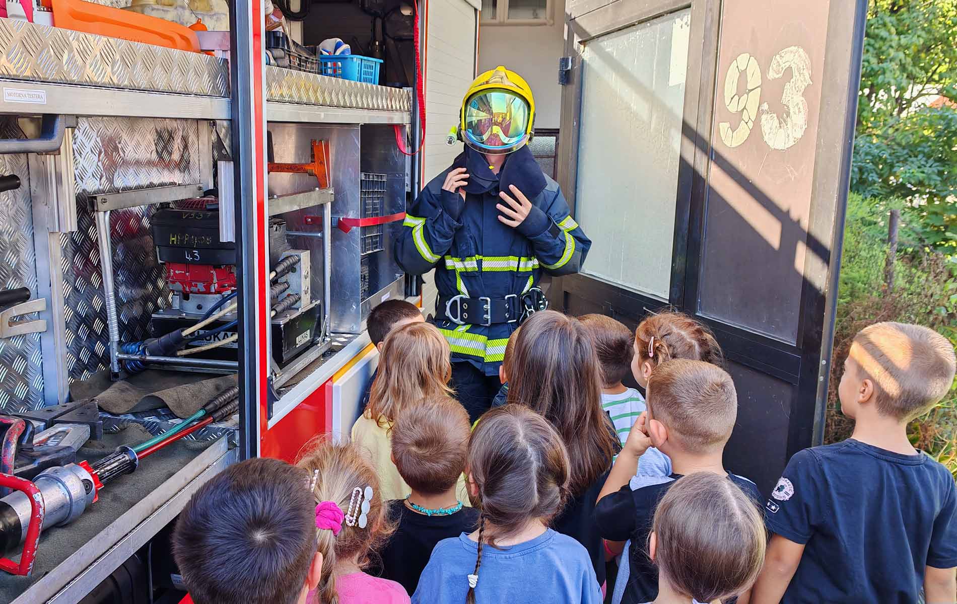 U sklopu obeležavanja 17. septembra, krsne slave i Dana Sektora za vanredne situacije Ministarstva unutrašnjih poslova, pripadnike Vatrogasno-spasilačke jedinice Pećinci posetila su deca iz Predškolske ustanove “Vlada Obradović Kameni” i tom prilikom su mogla da se upoznaju sa vozilima i tehničkom opremom kojima Jedinica raspolaže, a o poslu i zadacima koje vatrogasci-spasioci obavljaju govorio im je komandir pećinačkih vatrogasaca Milan Stanić.