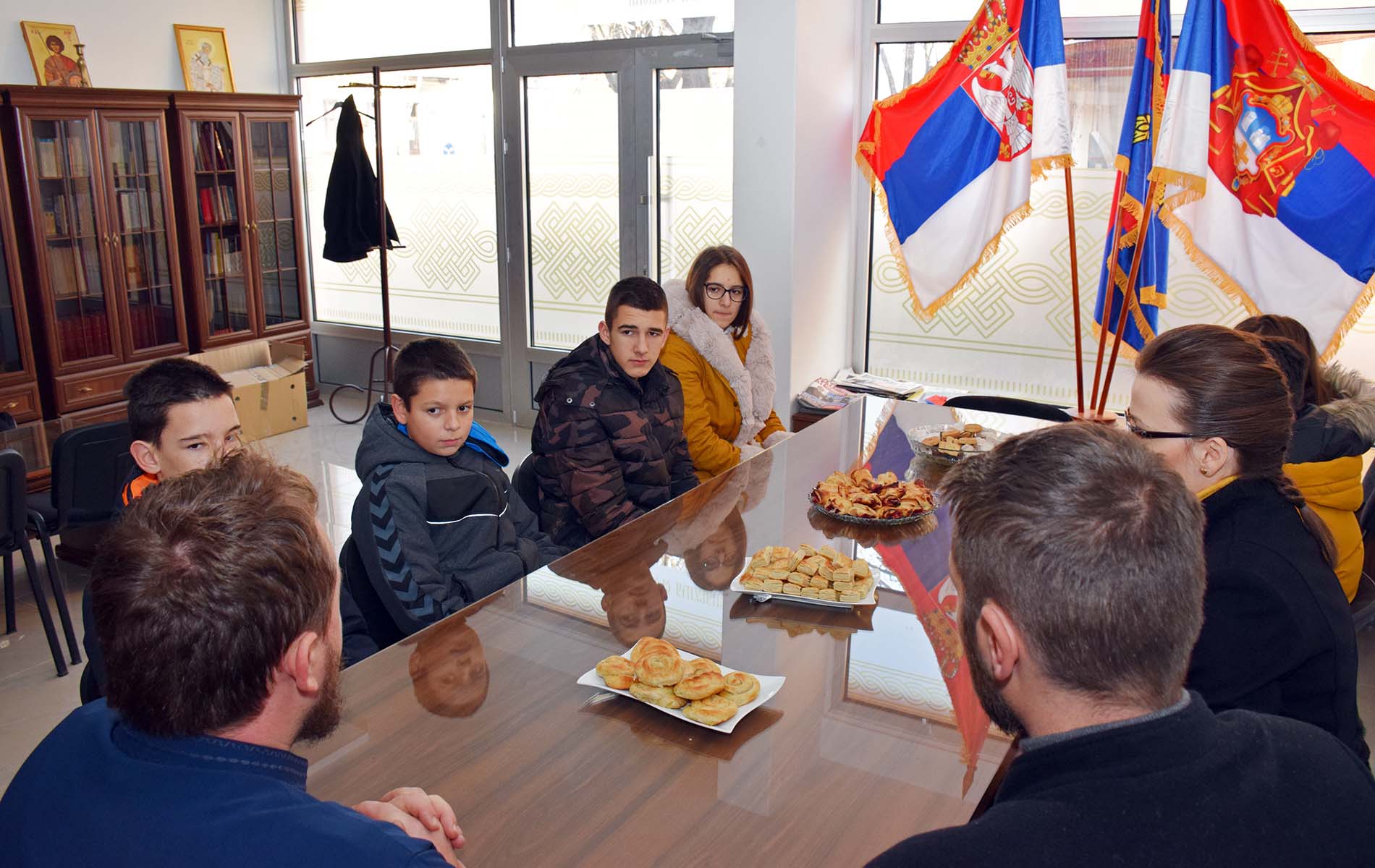 Архијерејски намесник пећиначки Бојан Мијановић примио је у петак у просторијама намесништва ученике Основне школе „Слободан Бајић Паја“ из Пећинаца, који су се на међународном квиз такмичењу о Немањићима пласирали у првих 50, у конкуренцији 280 екипа из целог света.